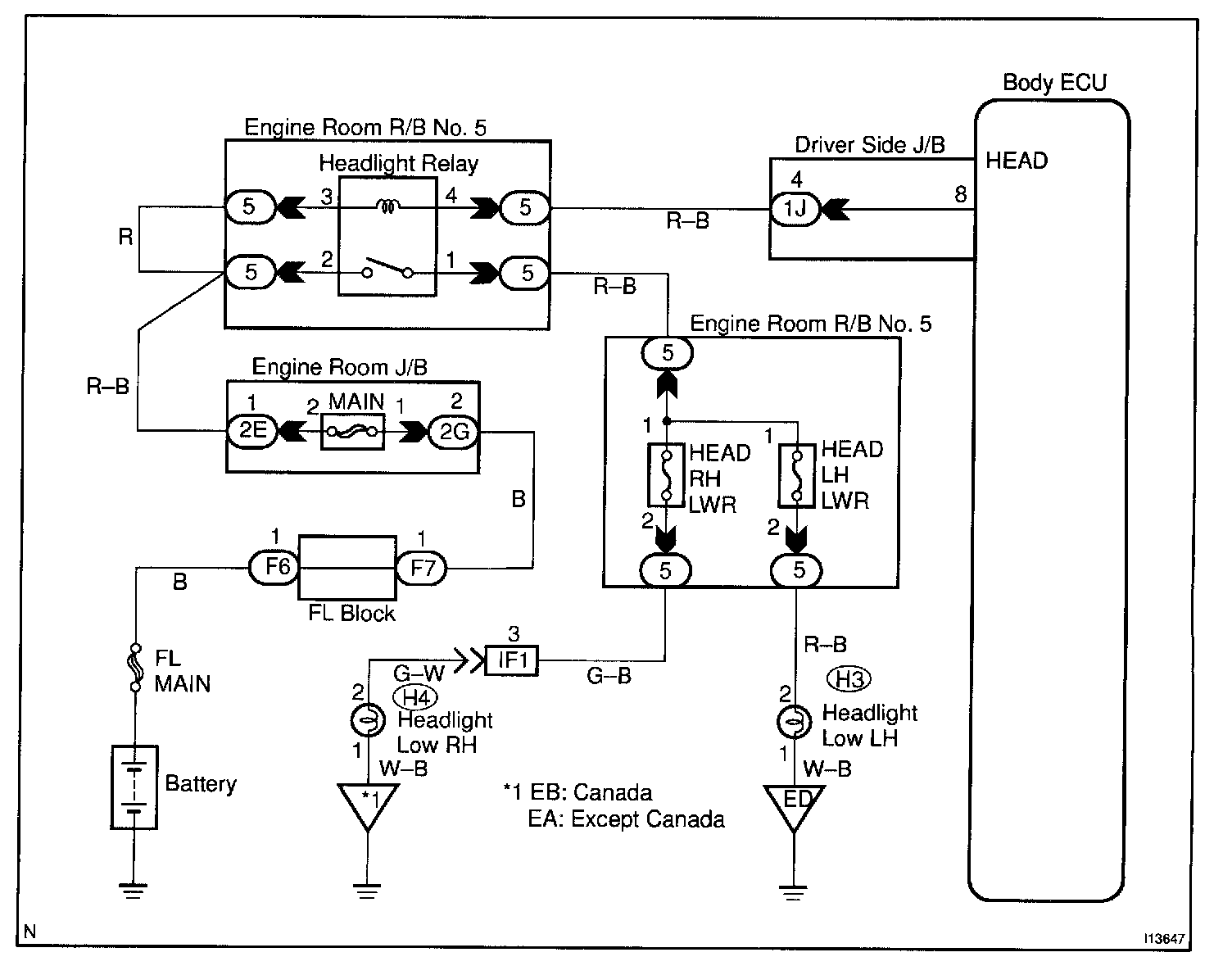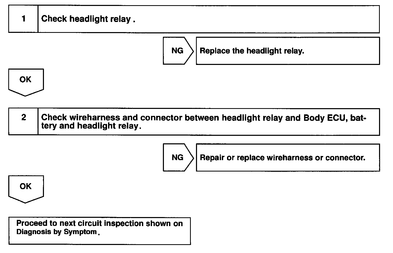 Head light relay will be "ON" by operating the headlight switch. The transistor which activates the taillight relay has two sorts: one activates directly by the headlight switch for fail safe and the other activates by CPU. the one that activates by CPU has two systems and prevents the headlight from turning off at the time of one system trouble in the automatic operation circuit.