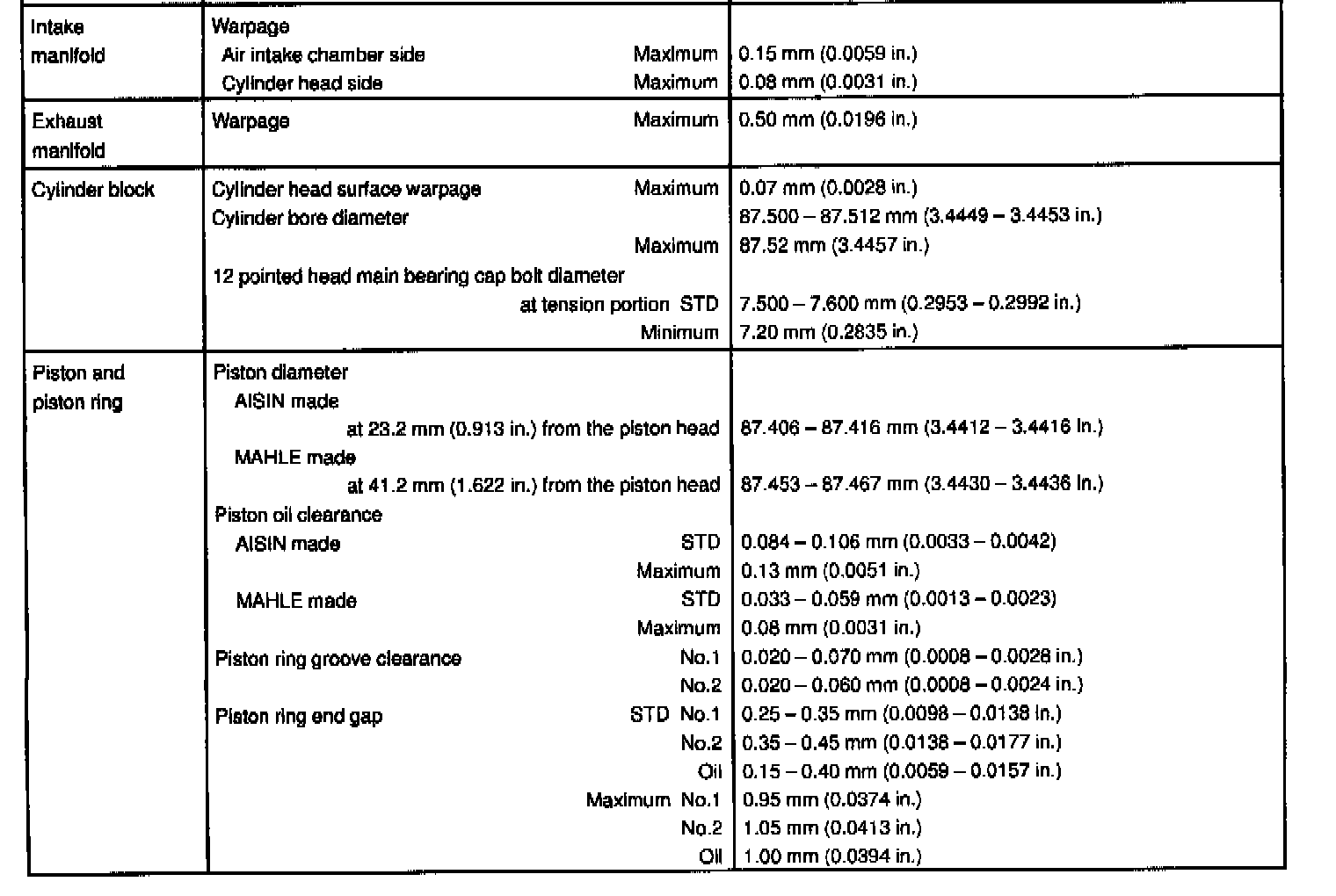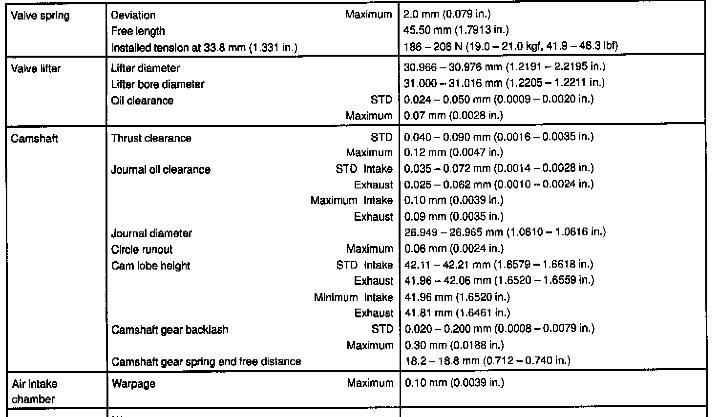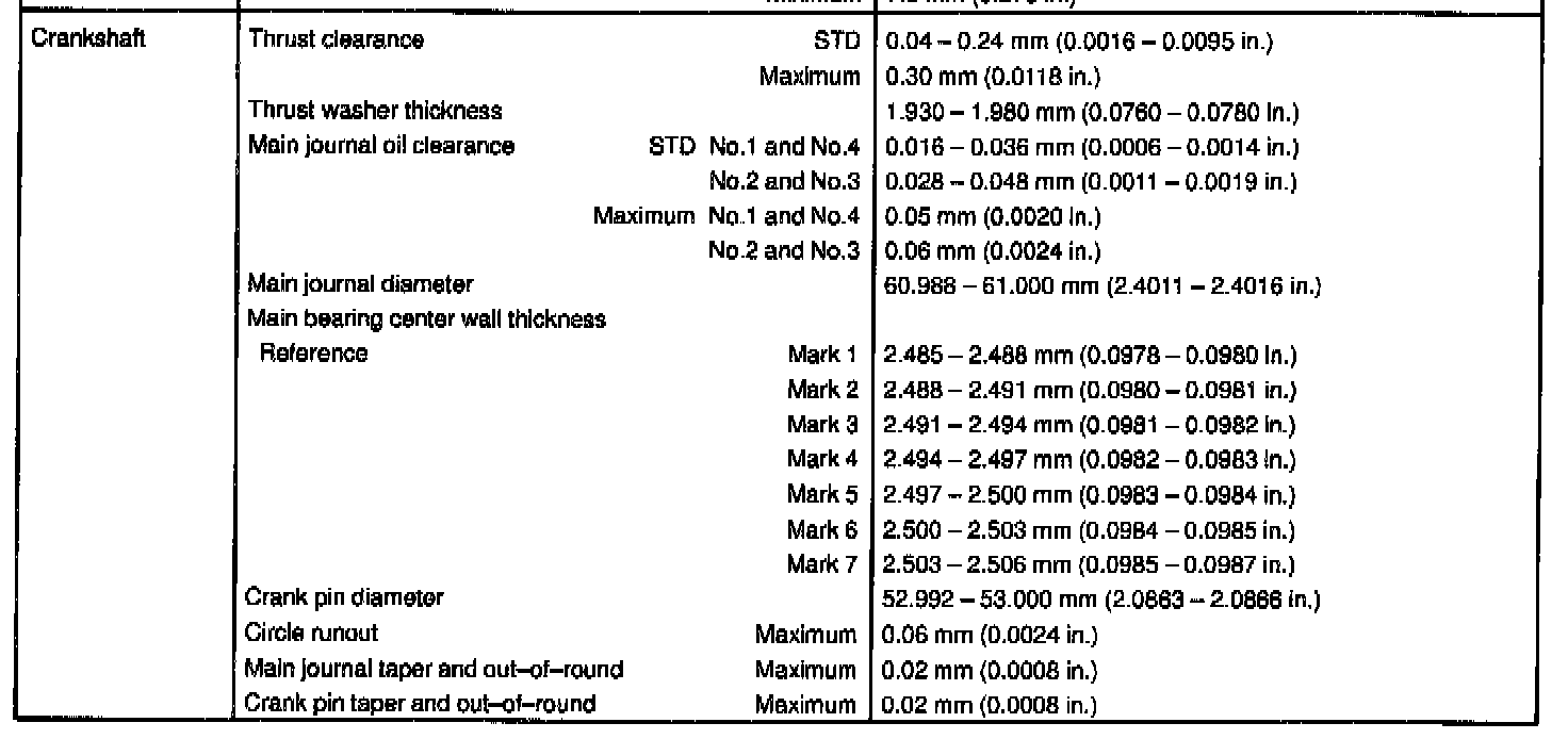 1MZ-FE Engine Mechanical Data: