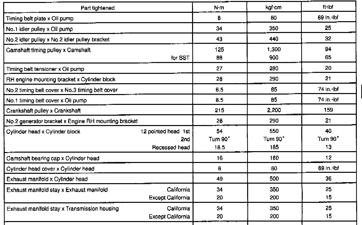 1MZ-FE Cylinder Head Torque & Sequence Cont.: