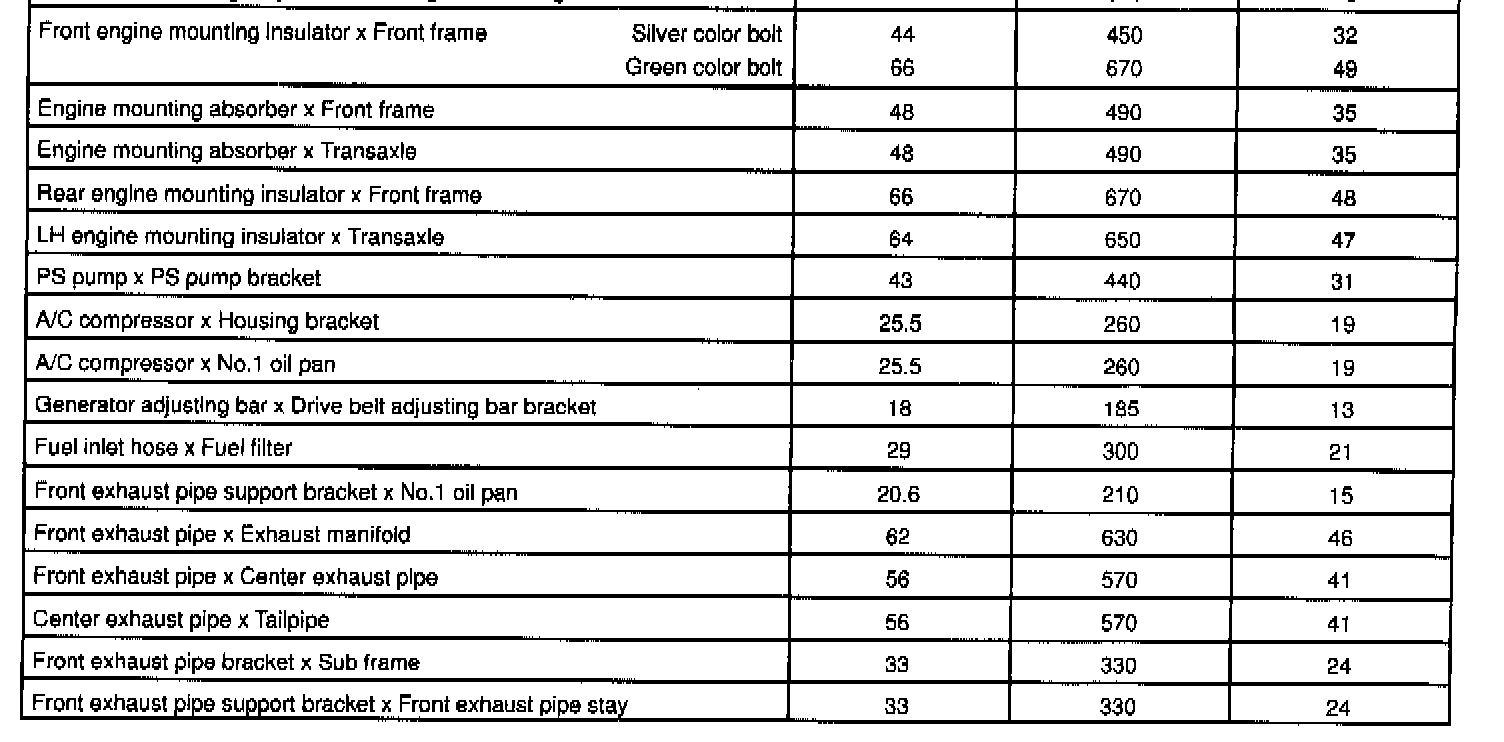 1MZ-FE Engine Mechanical Torque: