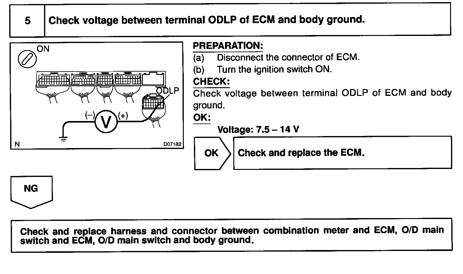 CIRCUIT DESCRIPTIONThe O/D main switch is a momentary type switch. When pressing the O/D main switch, the 0/DOFF indicator light lights up and ECM prohibits shifting to O/D, and when pressing it again, the O/D OFF indicator light goes off and ECM allows shifting to O/D. Turning the IG switch OFF will reset the O/D OFF indicator light.