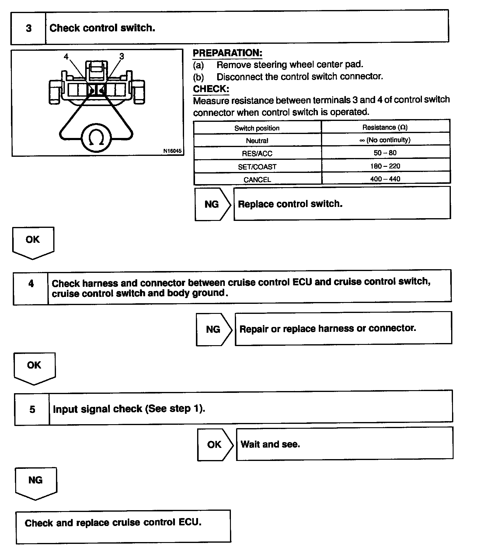 This circuit carries the SET/COAST, RESUME/ACCEL and CANCEL signals (each voltage) to the ECU.