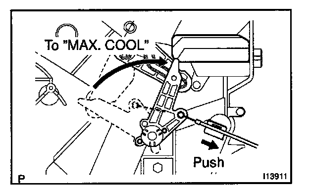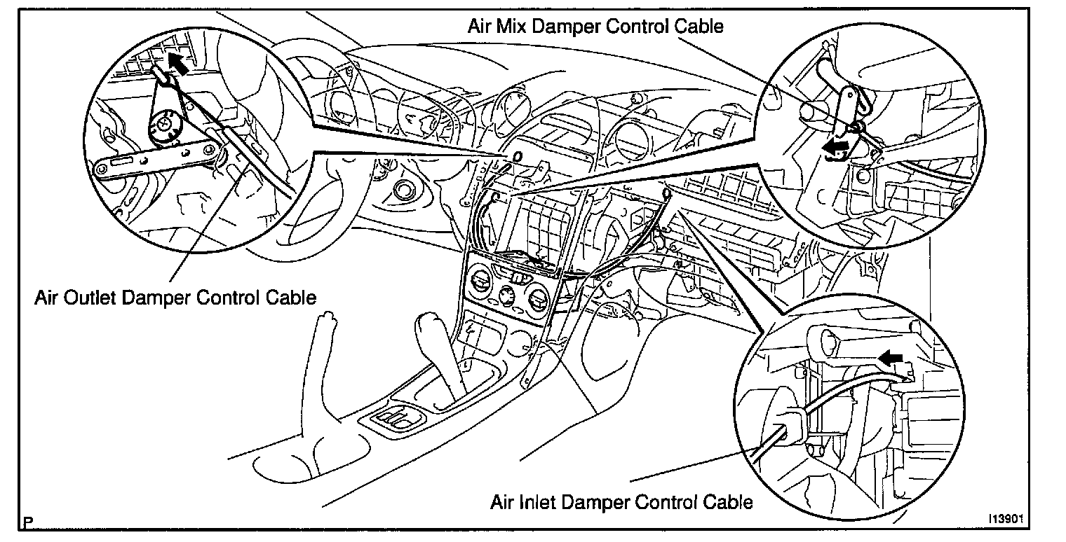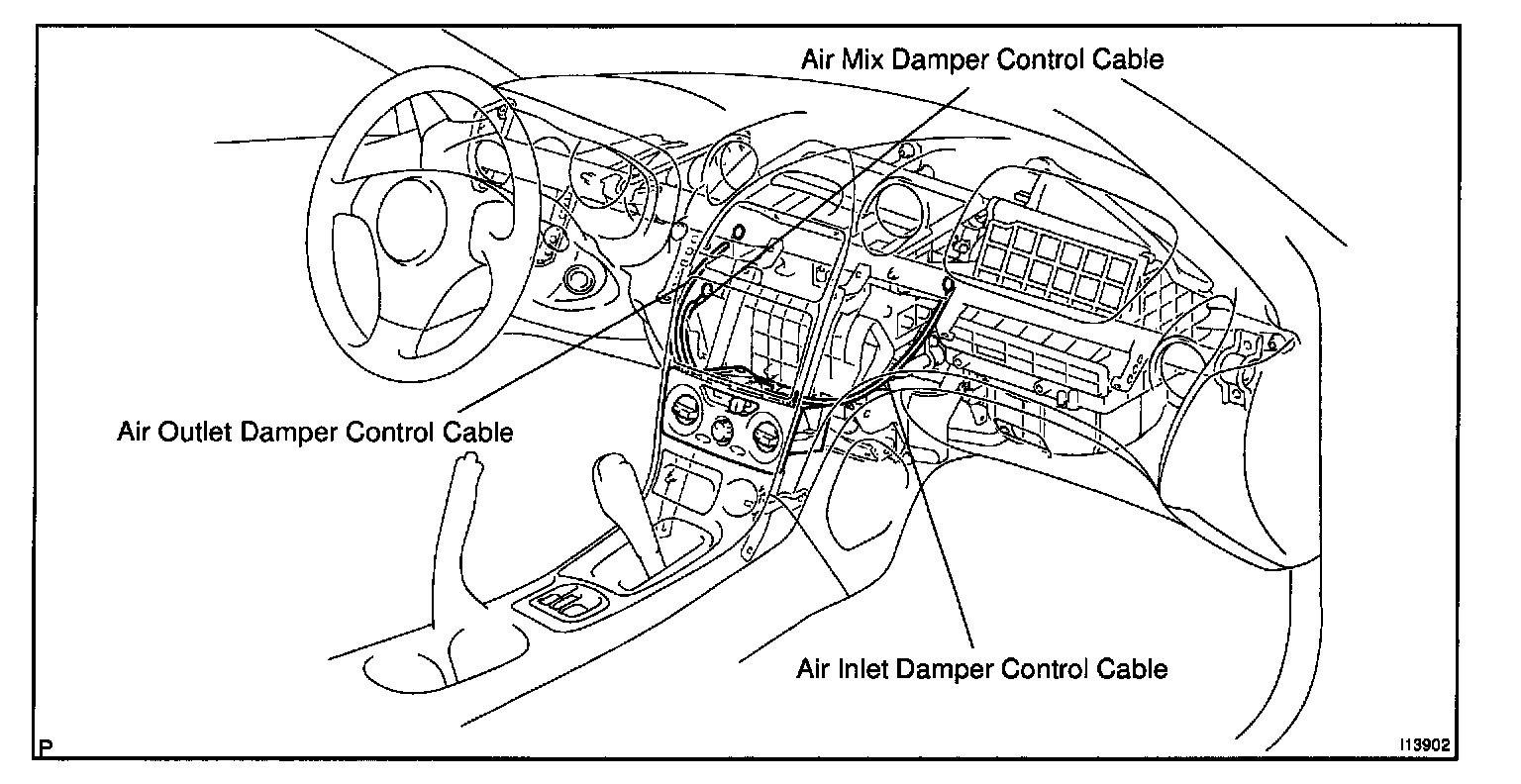 NOTE: When the air mix damper control cables is disconnected, should not bend the cable.