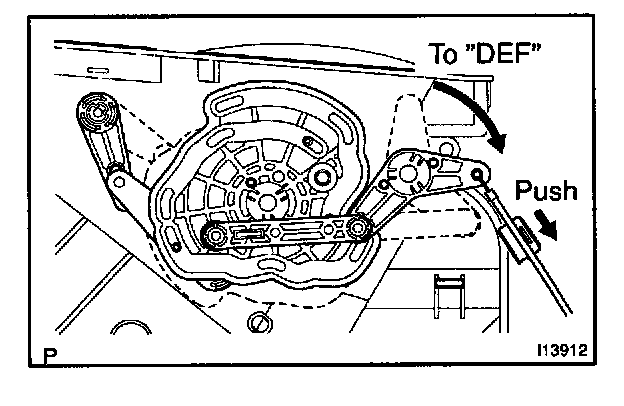 Pull the air outlet damper control link to "DEF" position, connect the control cable and lock the clamp.