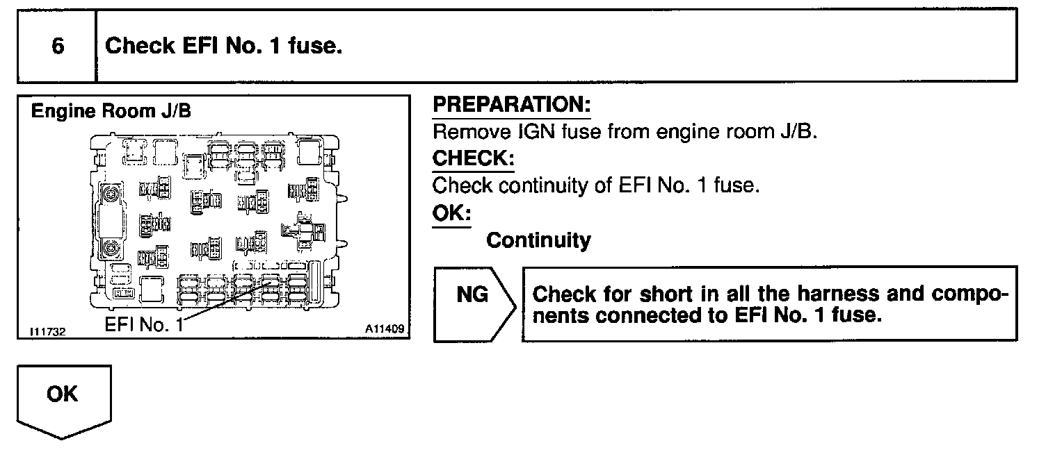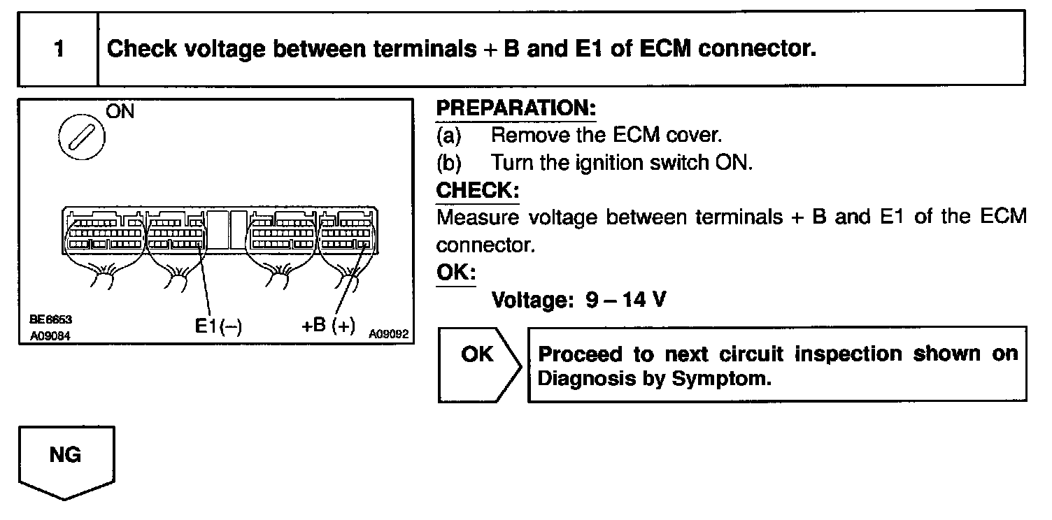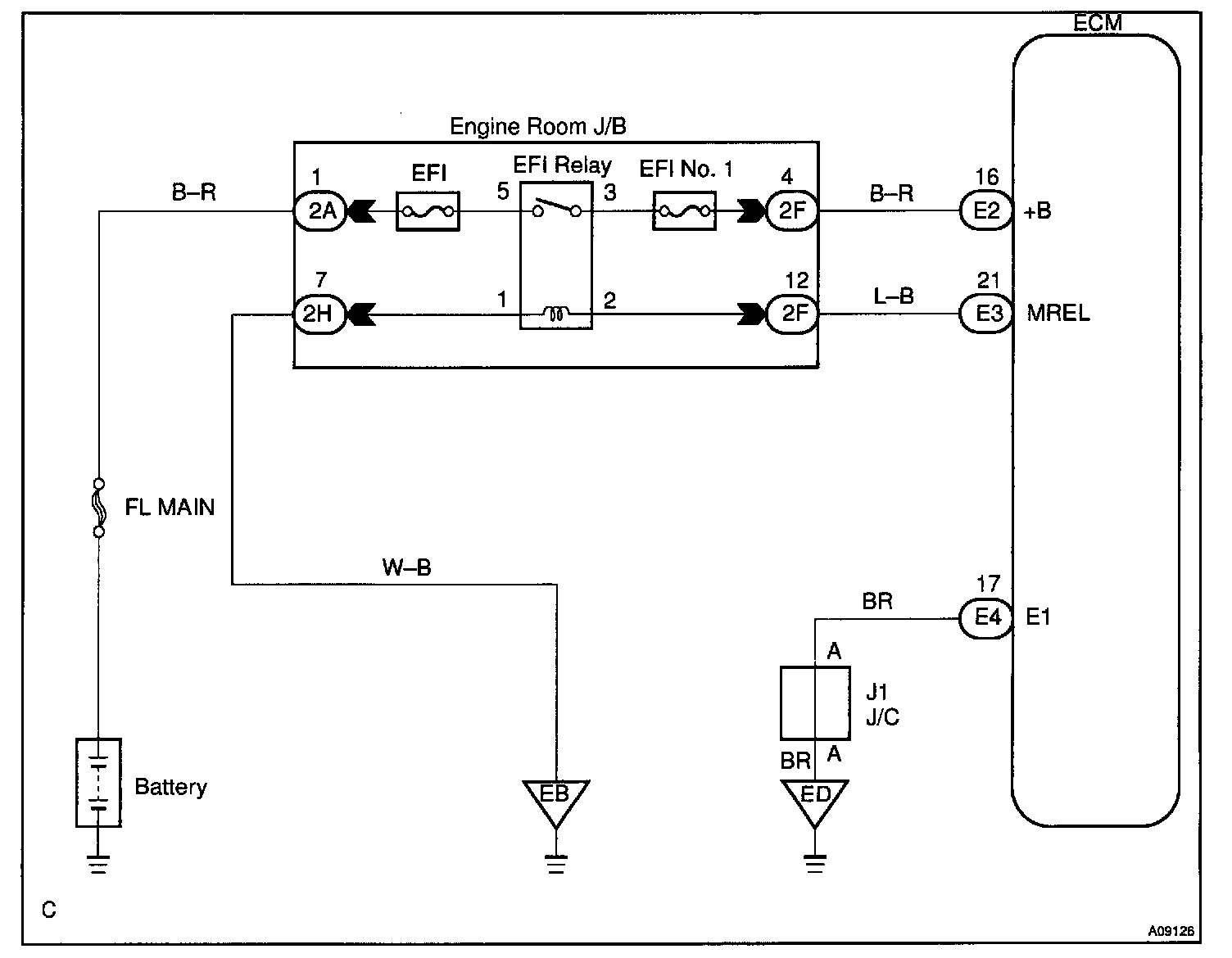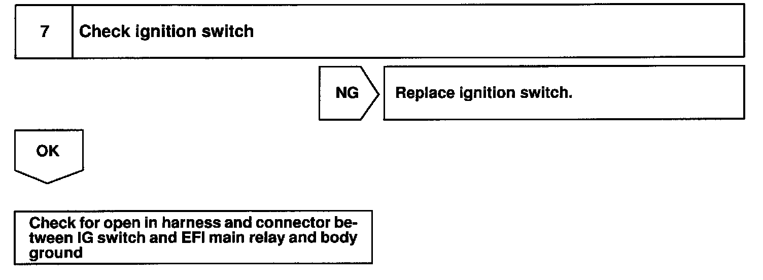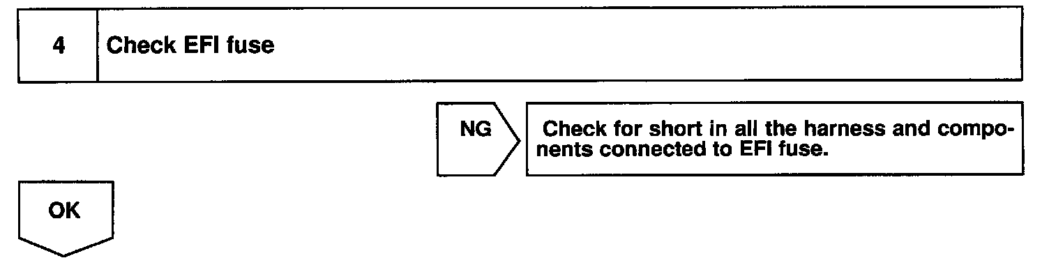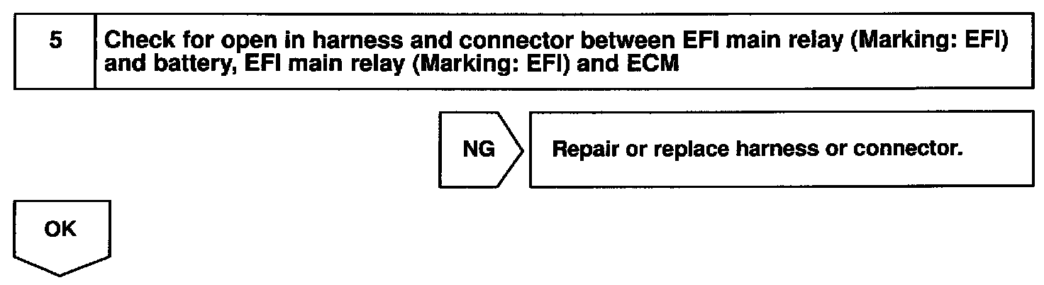 When the ignition switch is turned ON, battery positive voltage is applied to the coil, closing the contacts of the EFI main relay (Making: EFI) and supplying power to the terminal +B of the ECM.