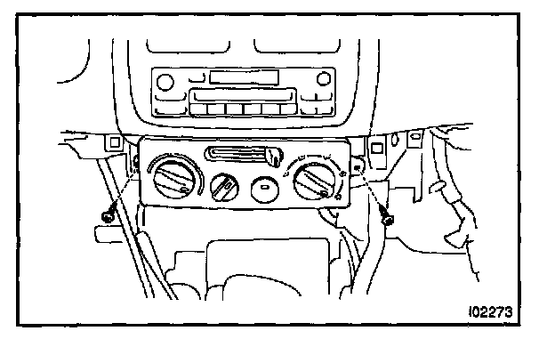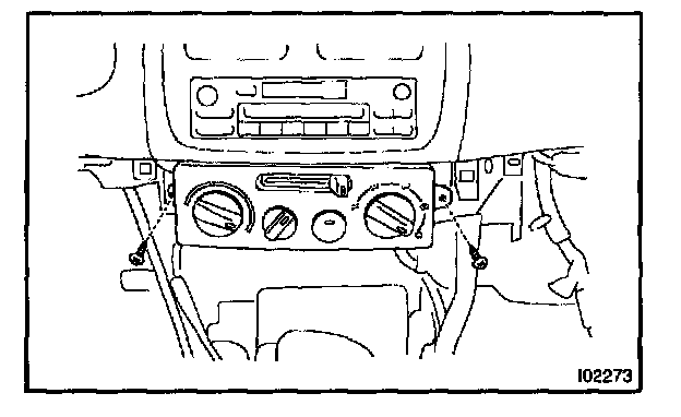 Remove the 2 screws and pull out the A/C control assembly, then disconnect the connector.