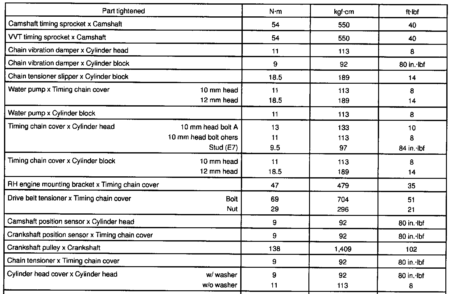 1ZZ-FE Engine Mechanical Torque: