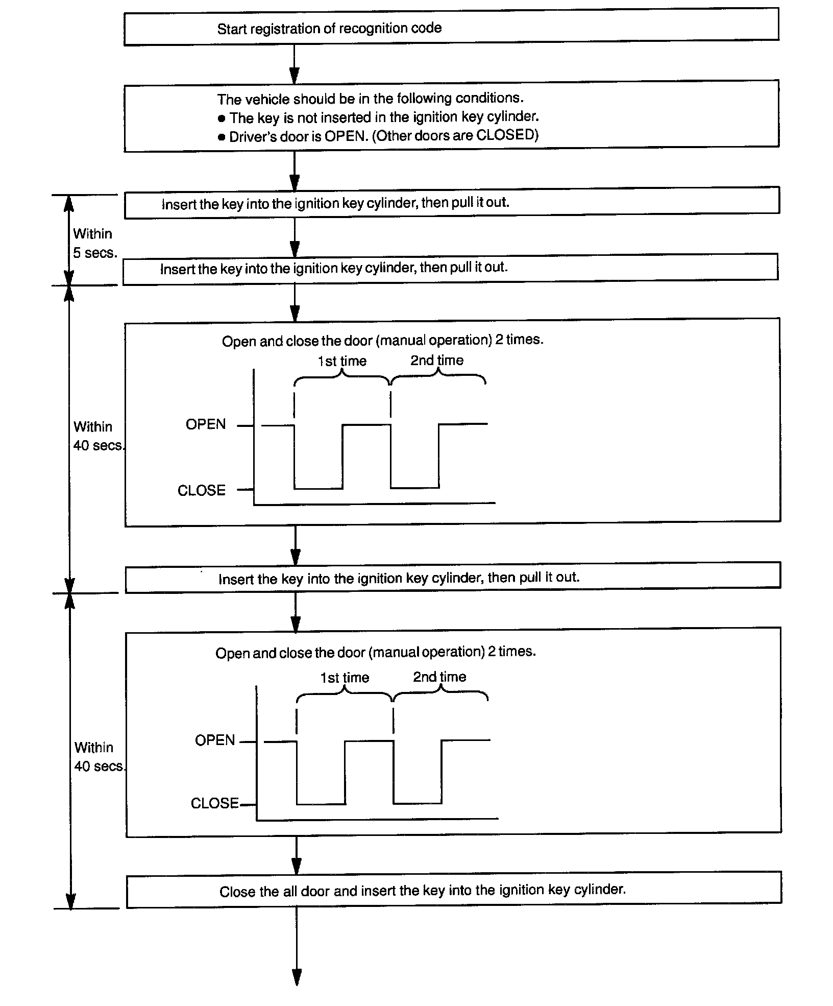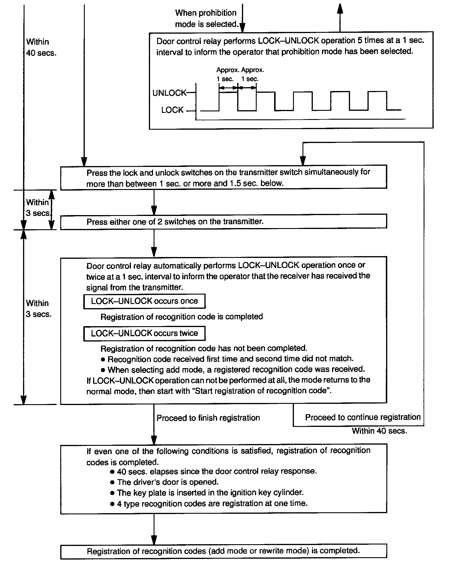 b. Follow the charts to register the transmitter recognition code at the wireless door lock control receiver.