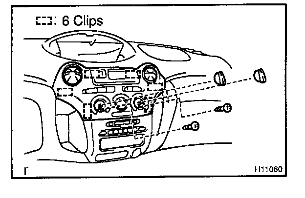 c. Using a screwdriver, release the 6 fitting clips and pull out the cluster finish panel, then disconnect the connectors.