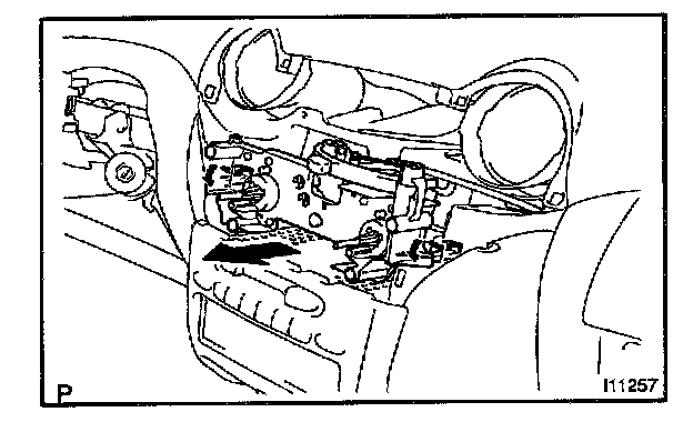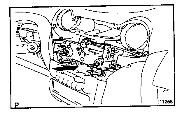 c. Fit the 2 claws of heater control assembly in the instrument panel hole.