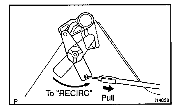 Set air inlet damper control lever to "RECIRC" position and connect the inner cable to lever pin and clamp the outer cable.