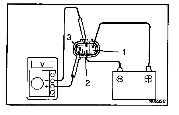 b. Connect the positive (+) lead from tester to terminal 3 and the negative (-) lead to terminal 2.