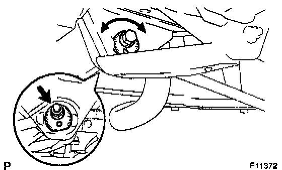 If the toe-in is not within the specified value, adjust it at the adjusting cam.