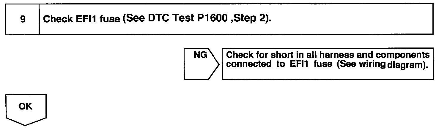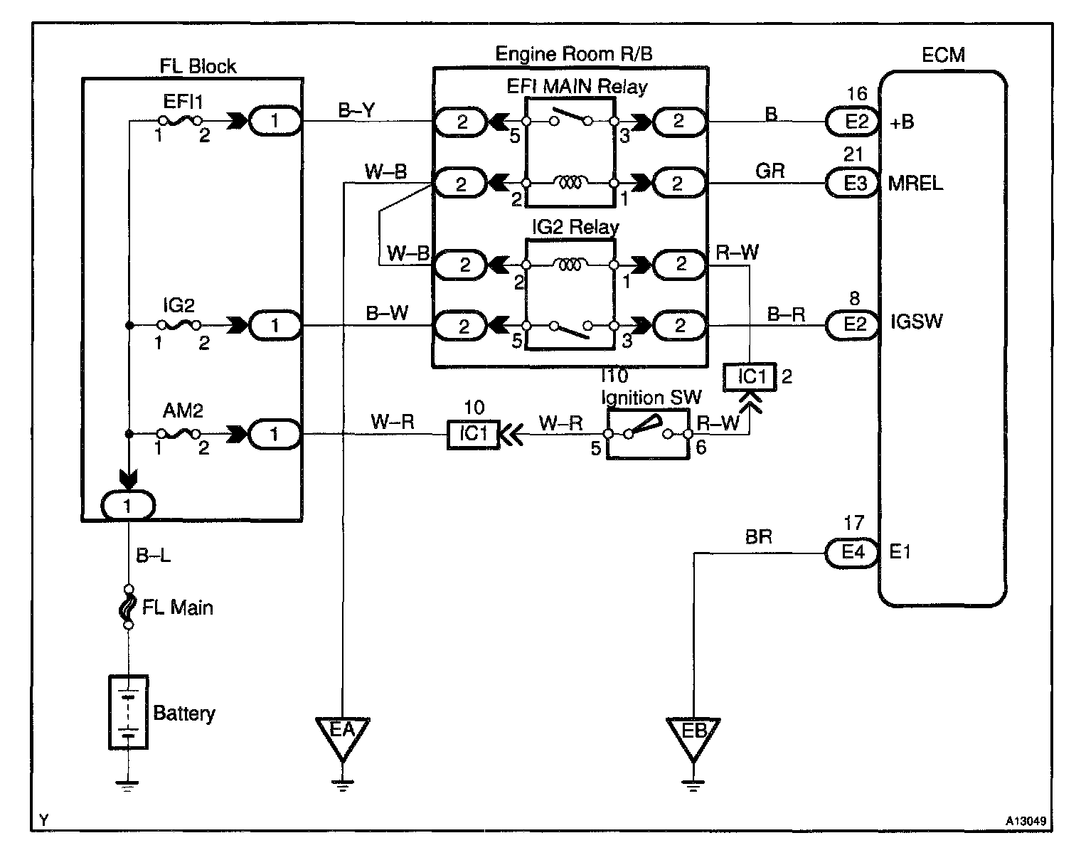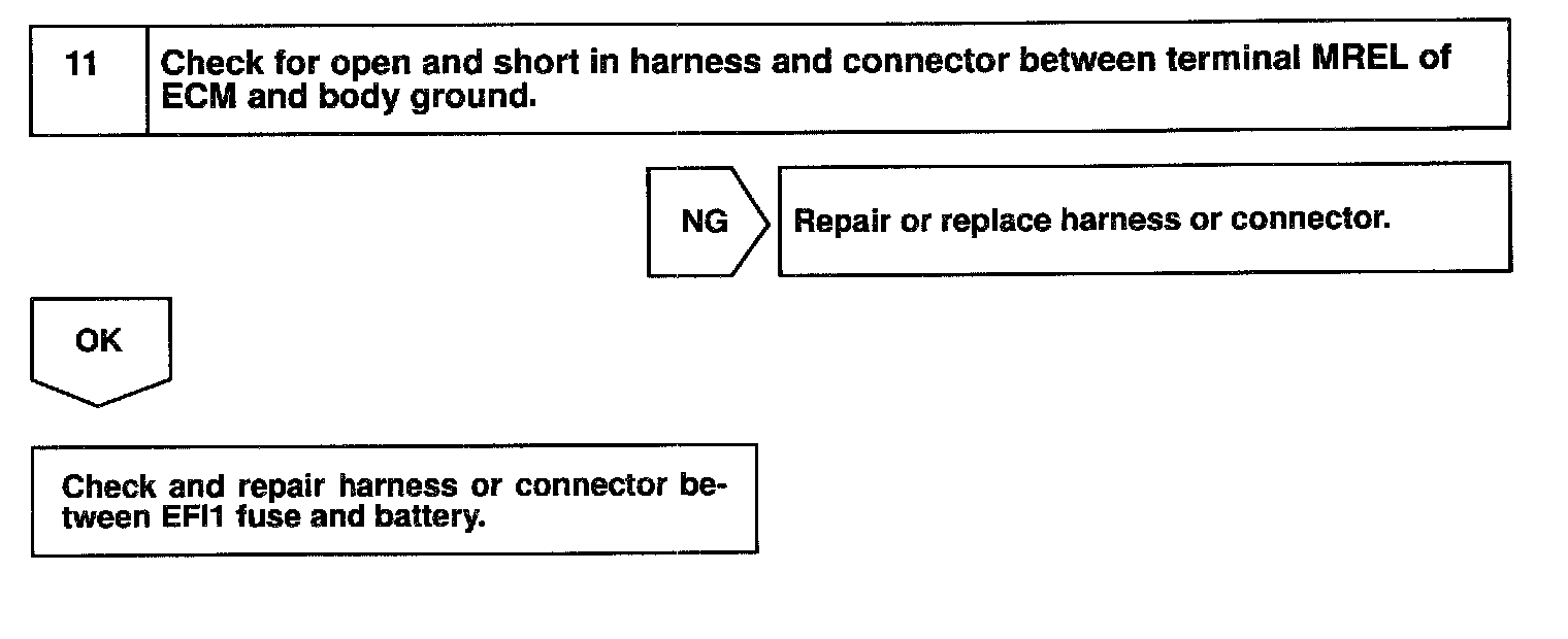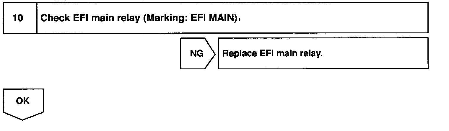 This signal causes current to flow to the coil, closing the contacts of the EFI main relay and supplying power to terminals +B of the ECM.