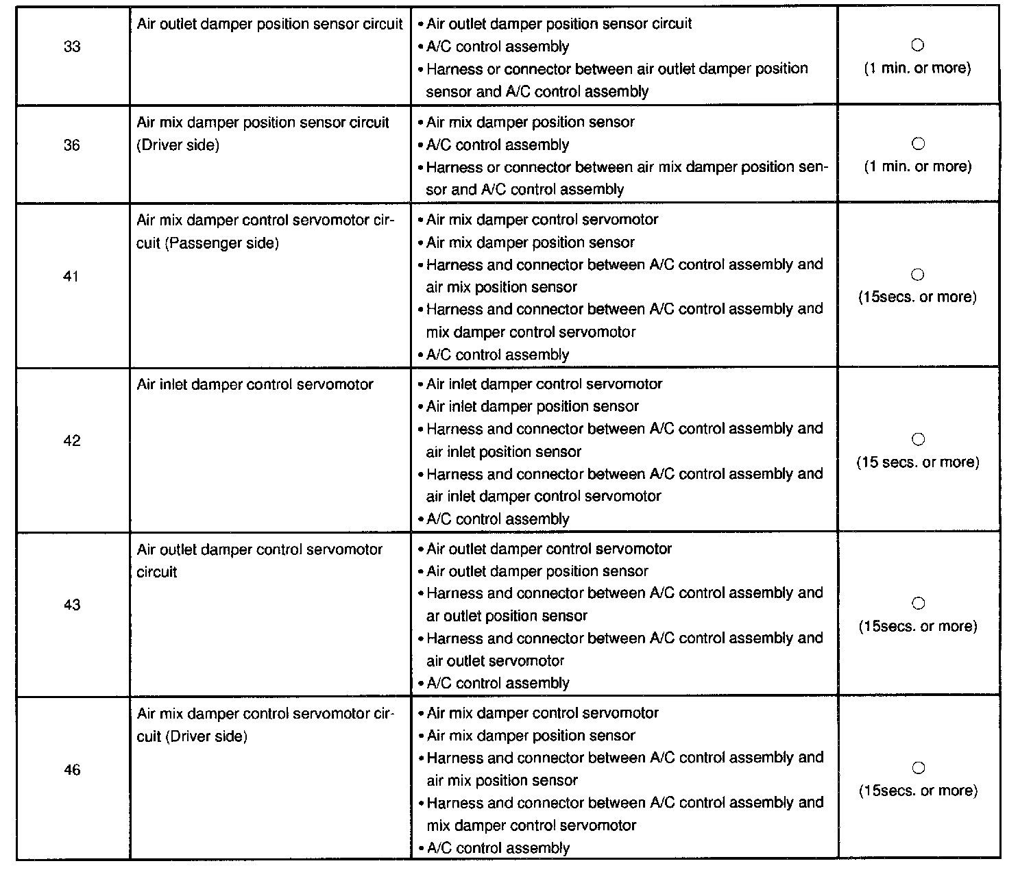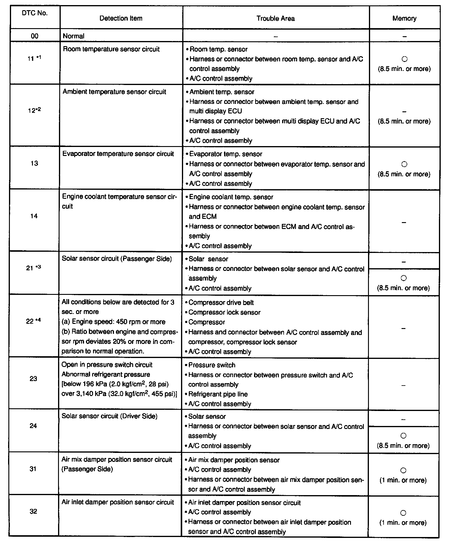 - *5 The A/C control assembly memorizes the DTC of the respective malfunction when it occurs for period of time indicated in the brackets.