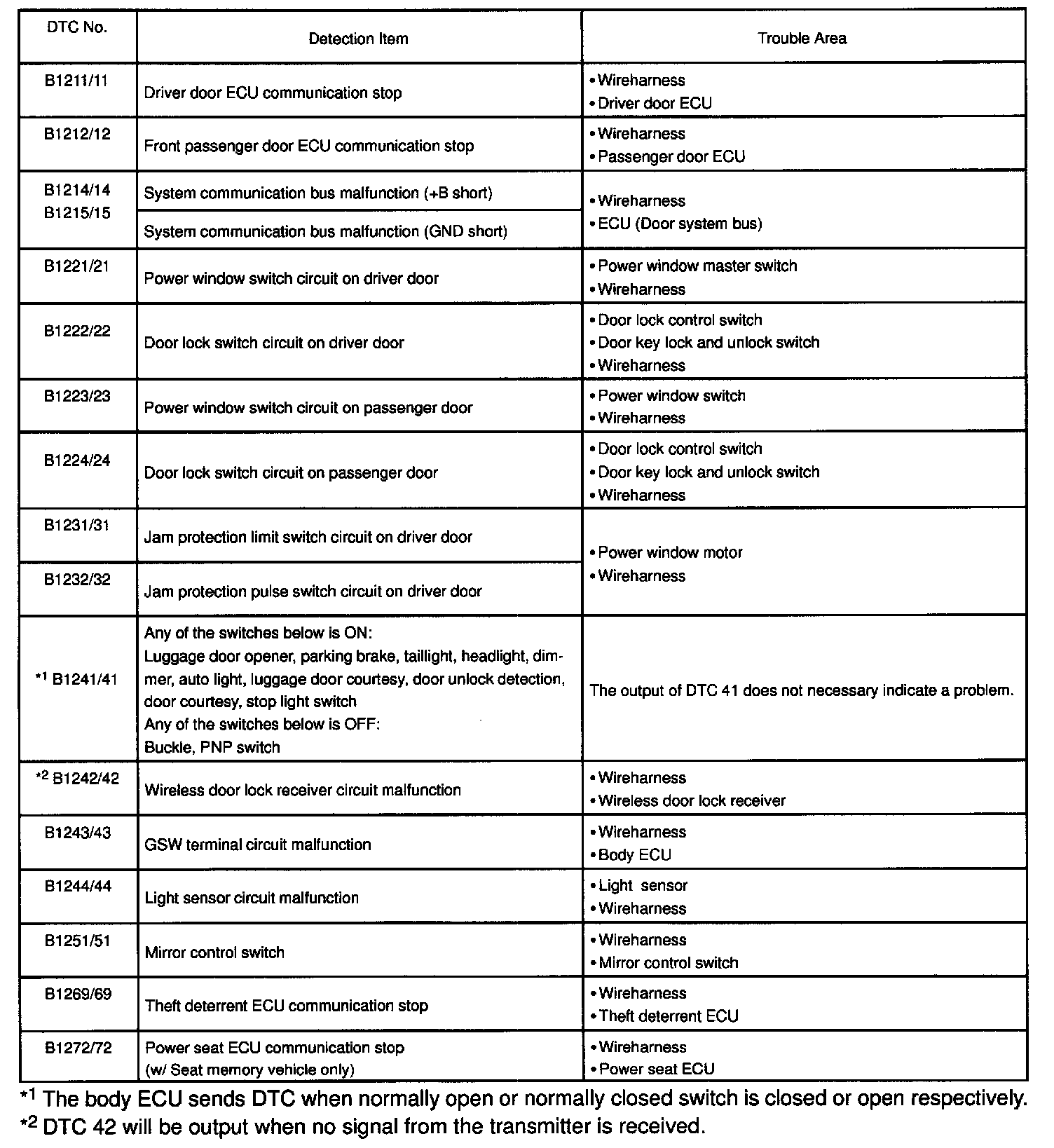 If a malfunction code is displayed during the DTC check, check the circuit listed for that code in the table.
