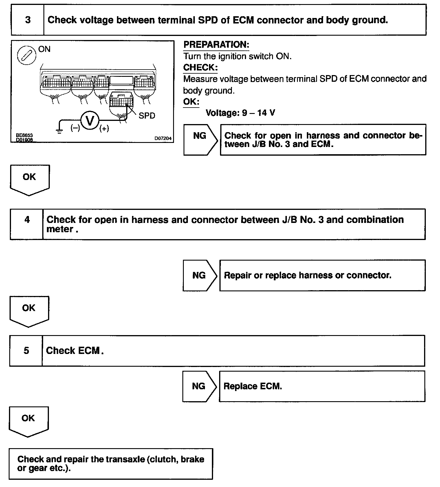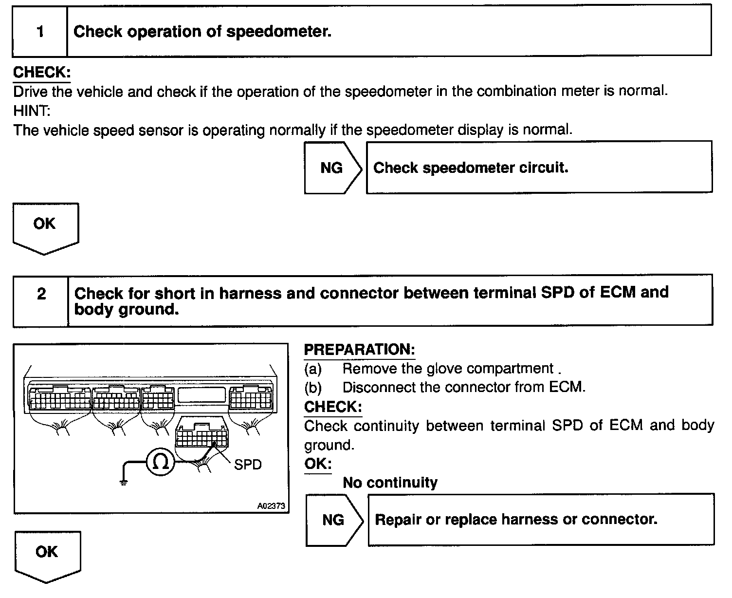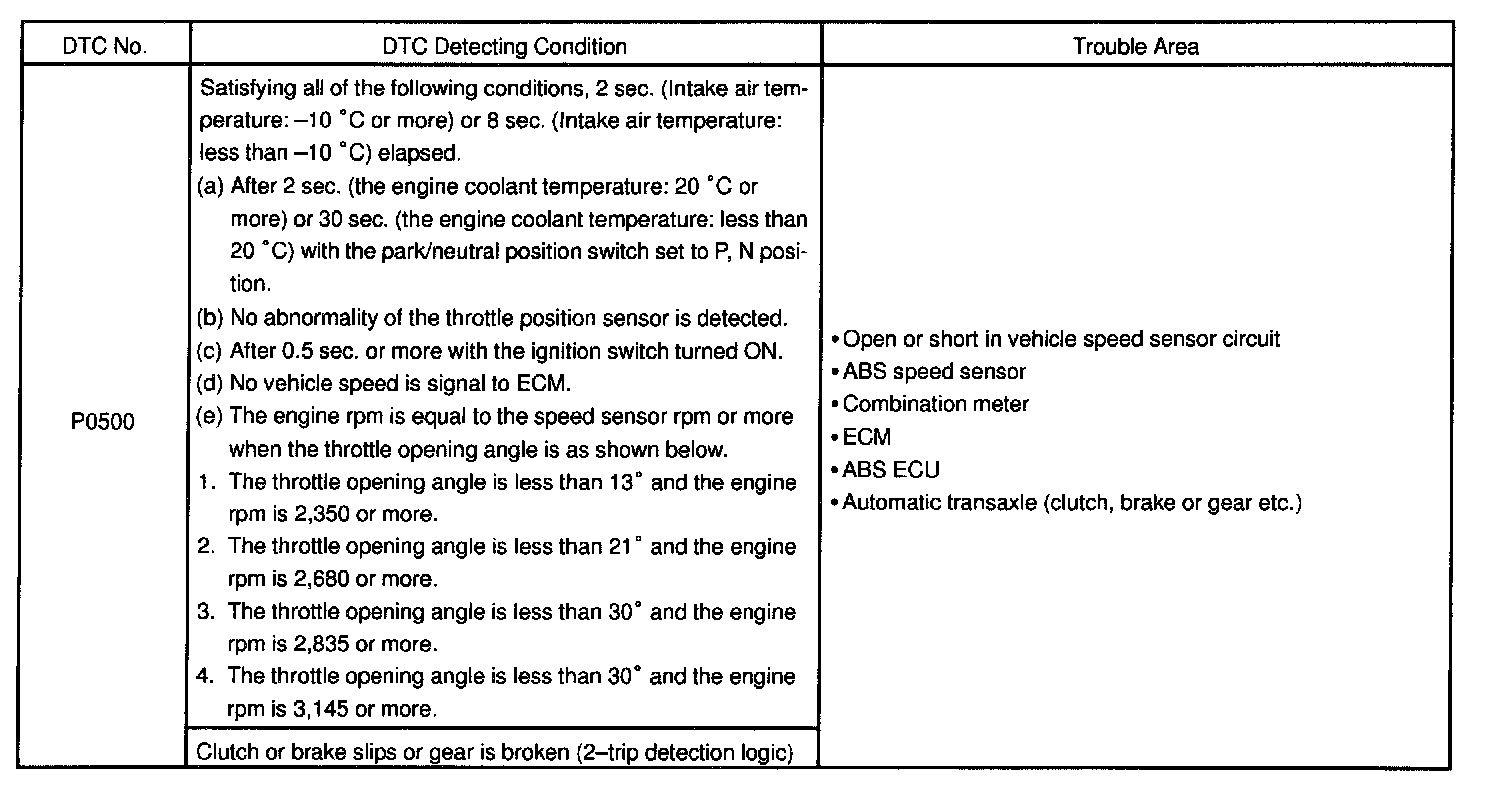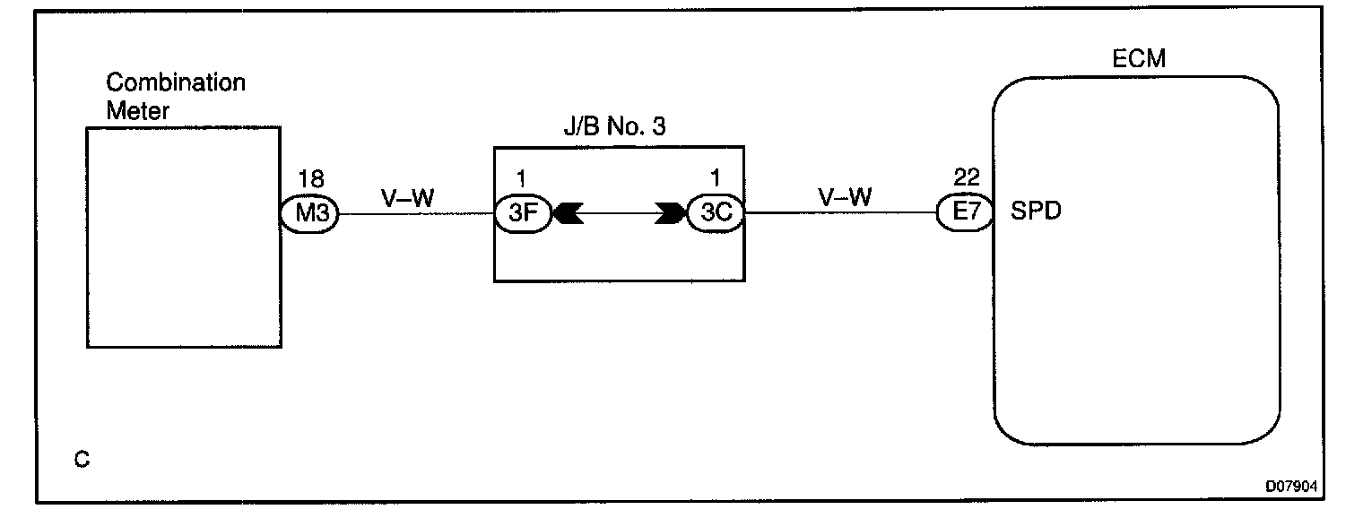 After this signal is converted into a more precise rectangular waveform by the waveform shaping circuit inside the combination meter, it is then transmitted to the ECM. The ECM determines the vehicle speed based on the frequency of these pulse signals.
