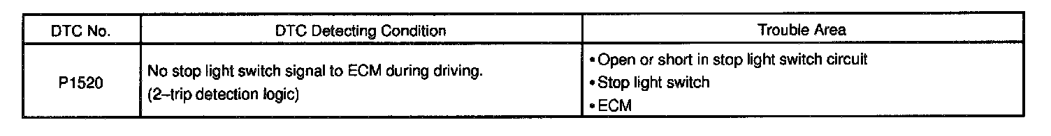 When the brake pedal is operated, this switch sends a signal to ECM. Then the ECM cancels operation of the lock-up clutch while braking is in progress.