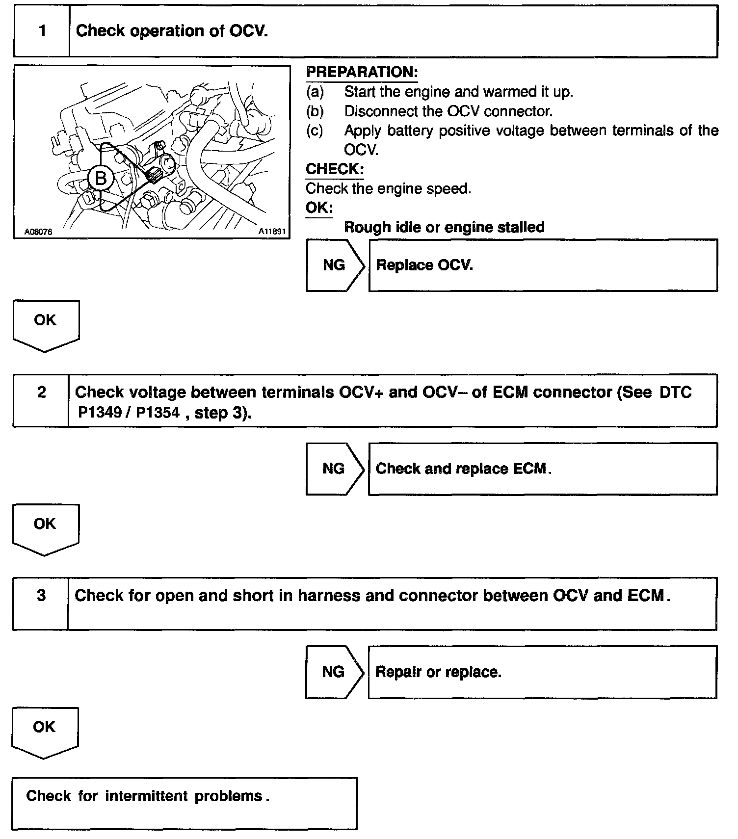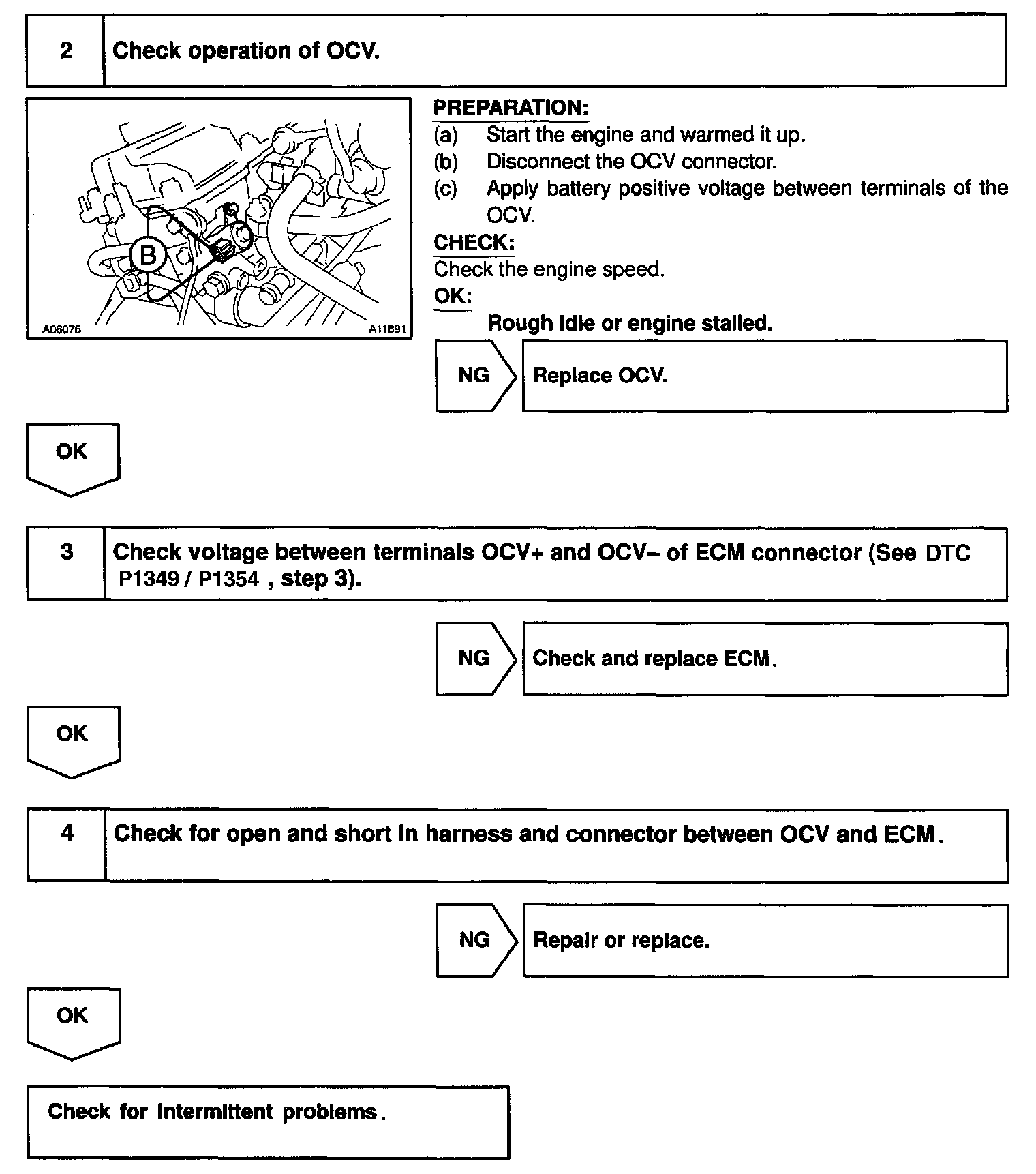 - If DTC P1663 displayed, check right bank OCV circuit.