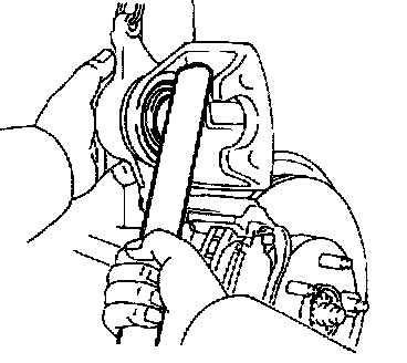 HINT: Do not disconnect the flexible hose from the caliper.