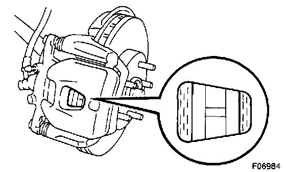 Check the pad thickness through the caliper inspection hole and replace the pads if it is not within the specification.