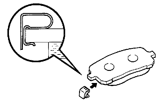 d. Install inner pad with the pad wear indicator plate facing upward.