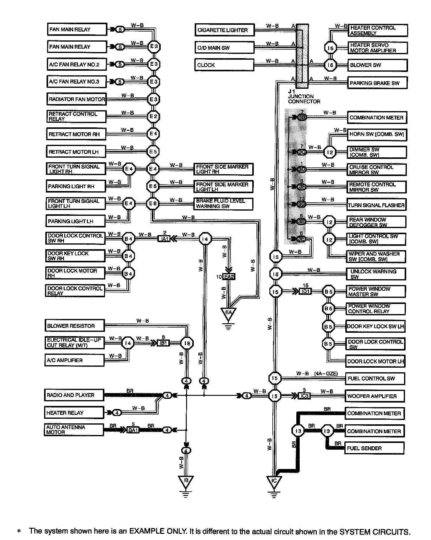 HOW TO READ GROUND POINTSThe ground points circuit diagram shows the connections from all major parts to the respective ground points. When troubleshooting a faulty ground point, checking the system circuits which use a common ground may help you identify the problem ground quickly. The relationship between ground points (EA,IB and IC shown) can also be checked this way.