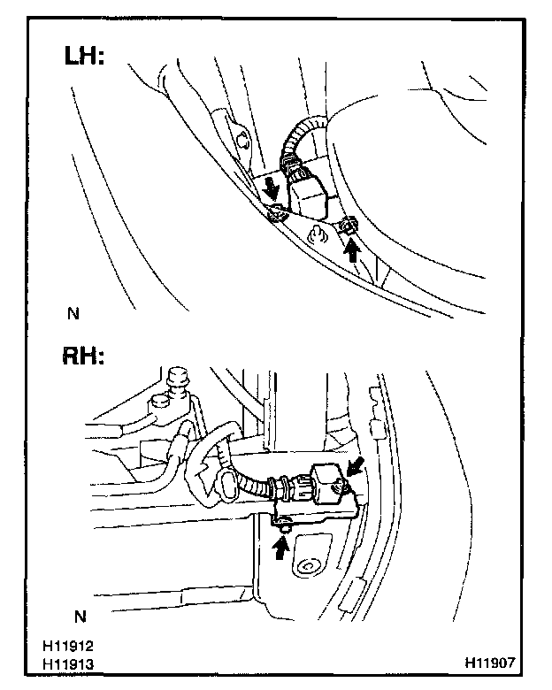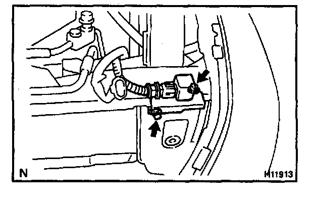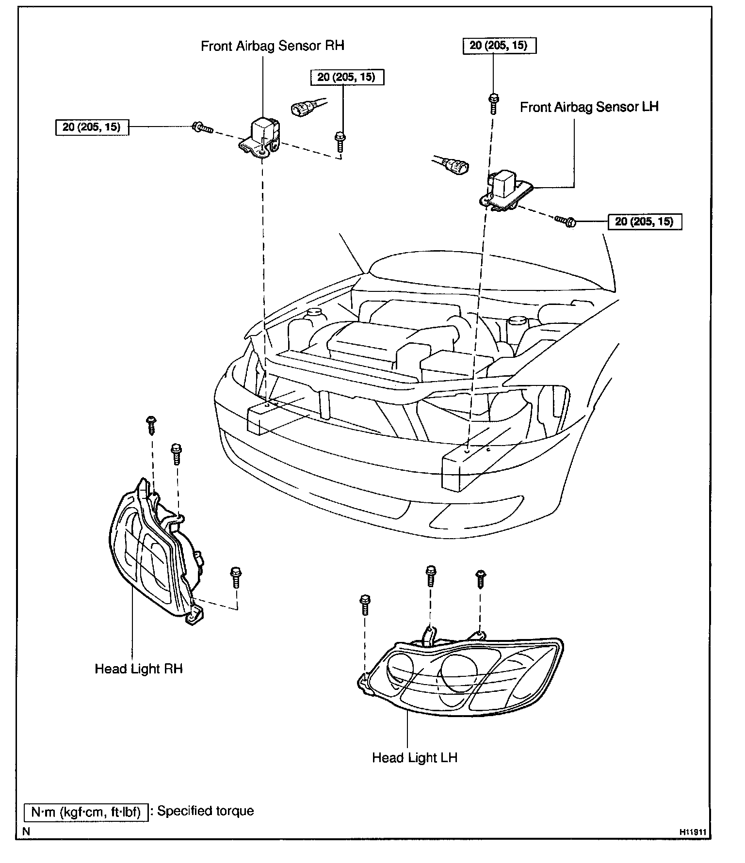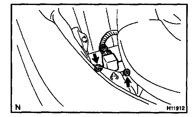 HINT: Install the front airbag sensor with the arrow on the sensor facing toward the front of the vehicle.