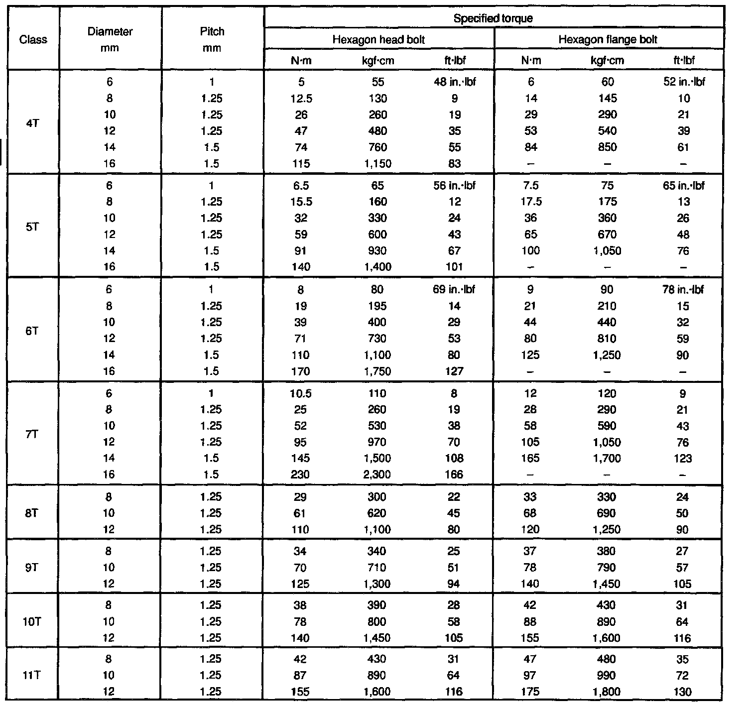 TORQUE SPECIFICATIONS