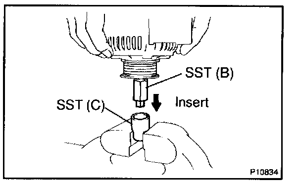 e. Insert SST (B) into SST (C), and attach the pulley nut to SST (C).