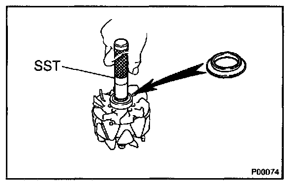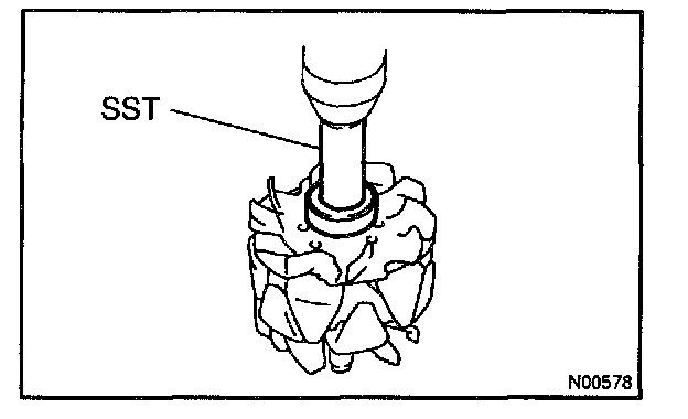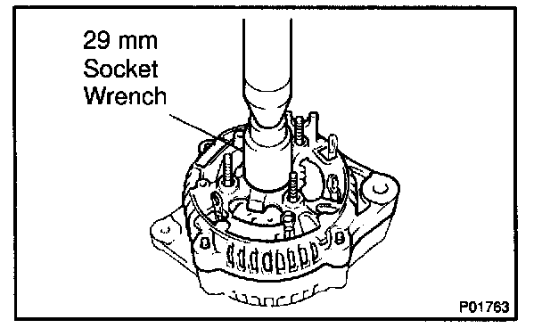 b. Using a 29 mm socket wrench and press, slowly press in the rectifier end frame.