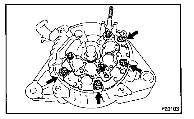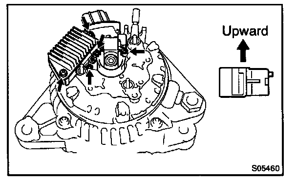 b. Remove the 5 screws, brush holder and voltage regulator.