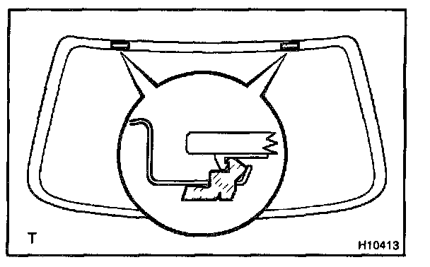 Install new back window outside moulding to the back window glass as shown in the illustration.