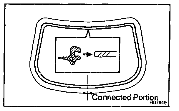 a. Using a brush or sponge, coat the edge of the glass and the contact surface with Primer G as shown in the illustration.