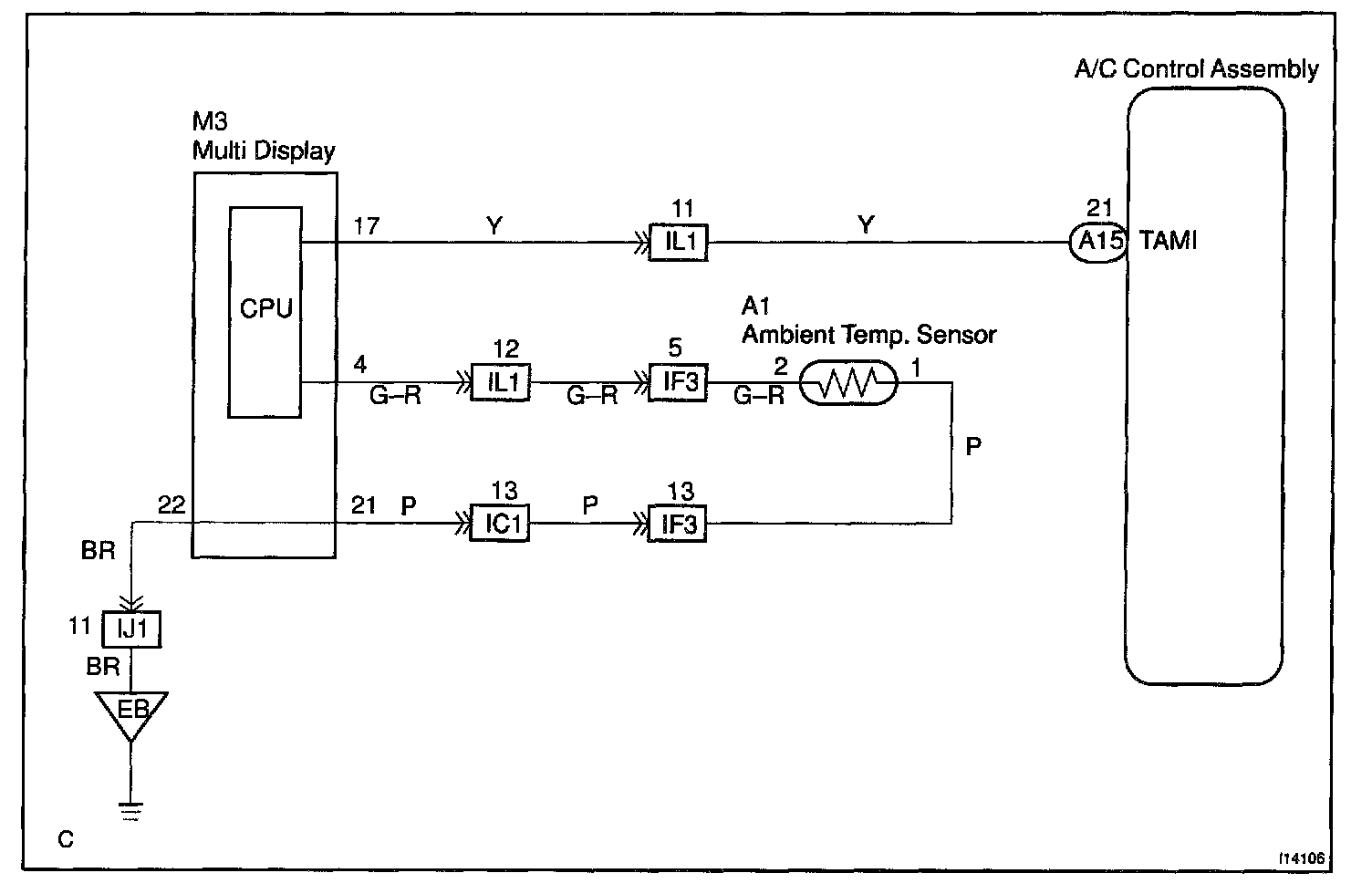 This sensor detects the ambient temperature and sends the appropriate signals to the A/C control assembly.