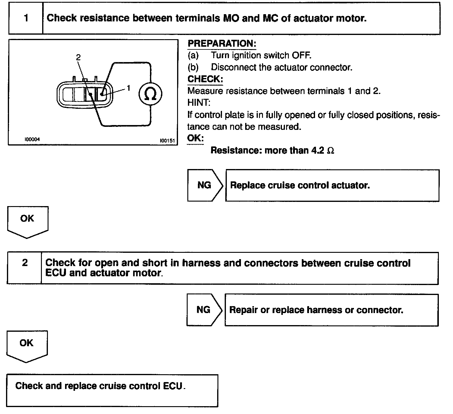 The actuator motor is operated by signals from the ECU. Acceleration and deceleration signals are transmitted according to changes in the Duty Ratio.