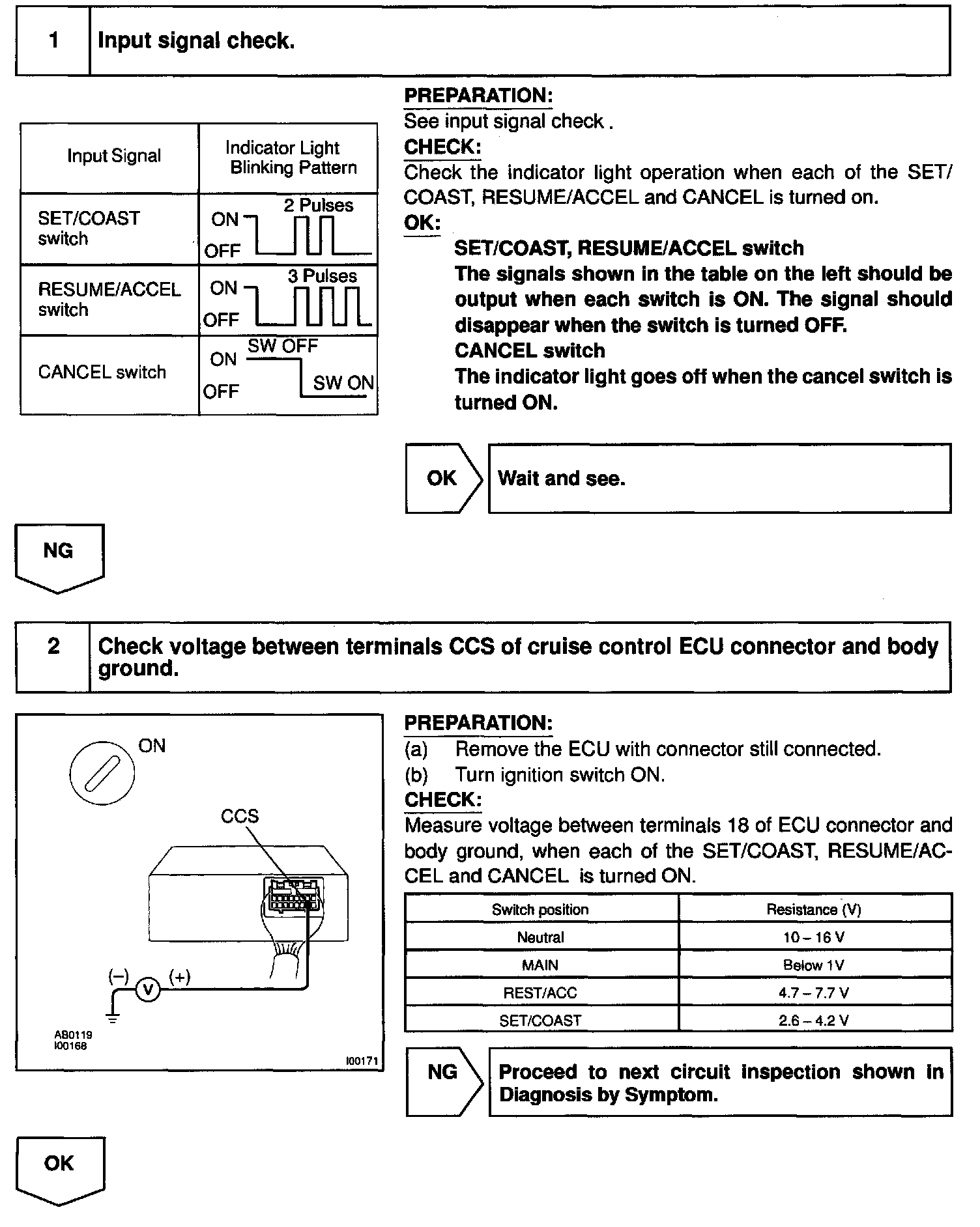 This circuit carries the SET/COAST, RESUME/ACCEL and CANCEL signals (each voltage) to the ECU.