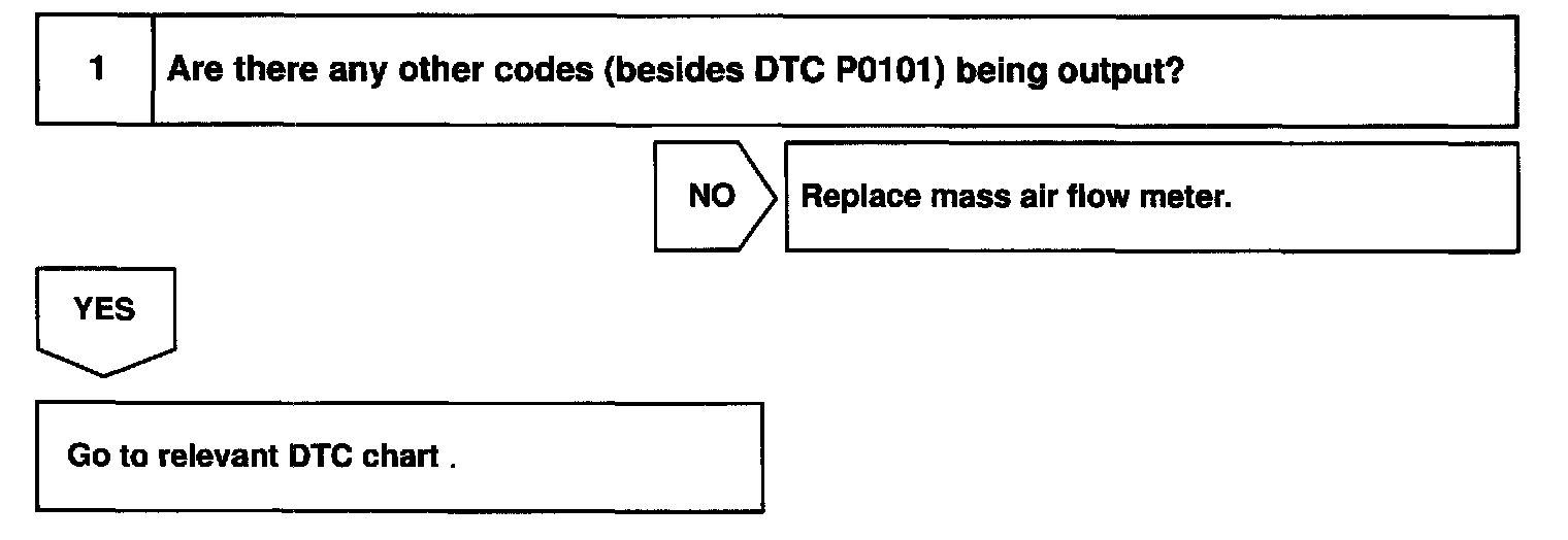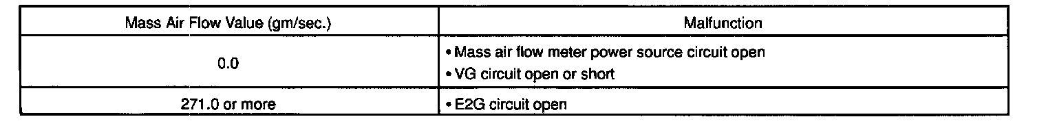 HINT: After confirming DTC P0100, use the OBD II scan tool or TOYOTA hand-held tester to confirm the mass air flow ratio from the CURRENT DATA.