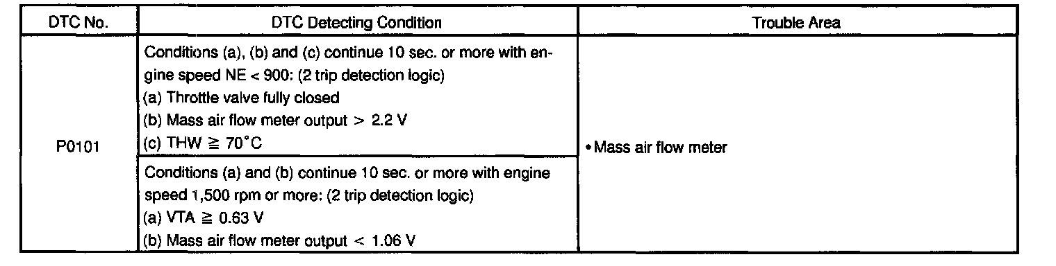 If the ECM detects DTC P0100 it operates the fail-safe function, keeping the ignition timing and injection volume constantly and making it possible to drive the vehicle.