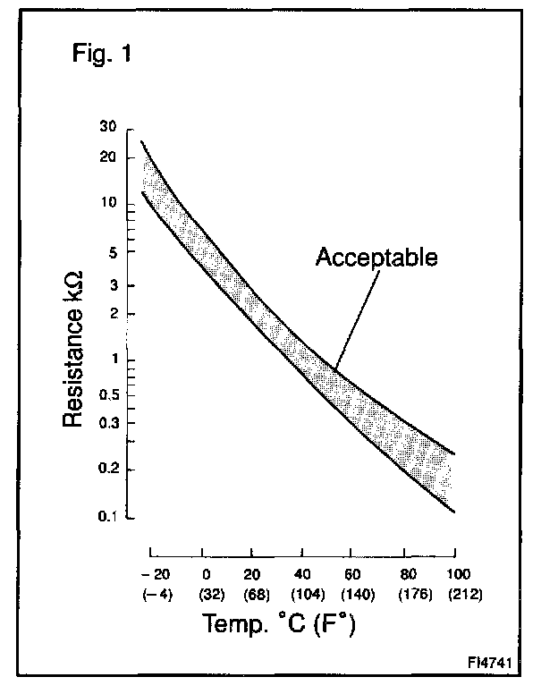 The lower the intake air temperature, the greater the thermistor resistance value, and the higher the intake air temperature, the lower the thermistor resistance value.