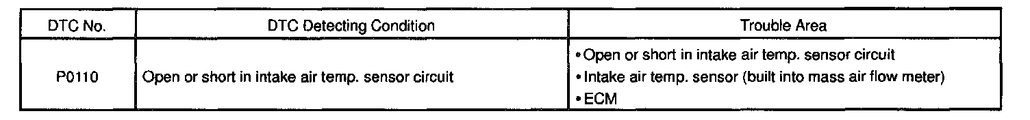 If the ECM detects the DTC P0110, it operates the fail-safe function in which the intake air temperature is assumed to be 20 °C (68 °F).