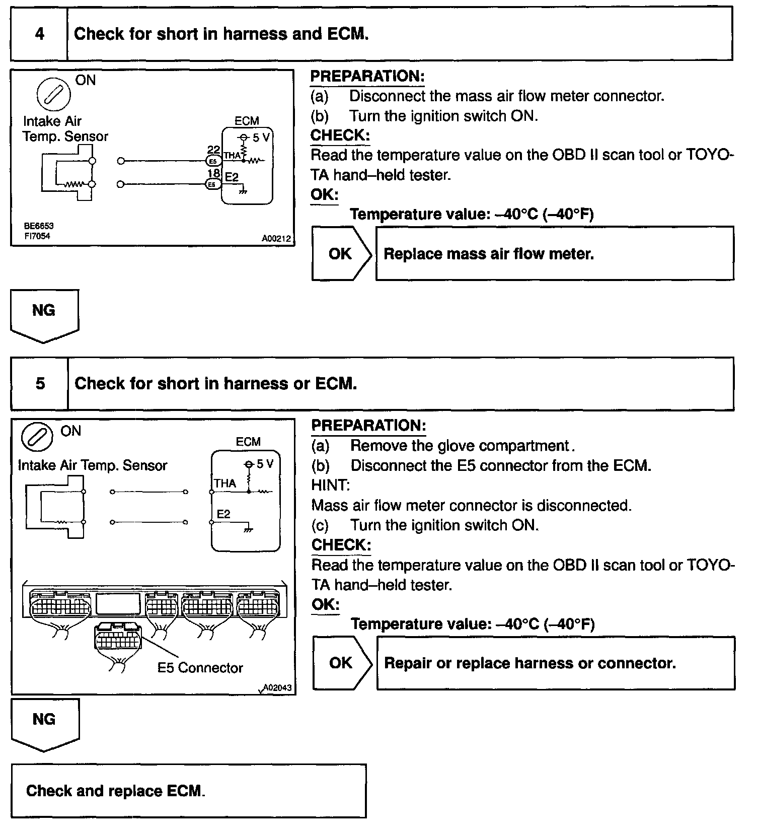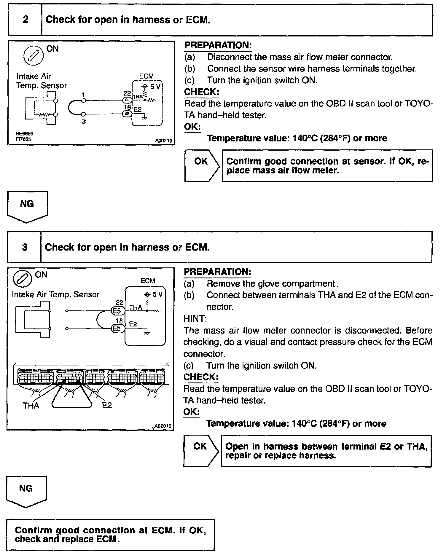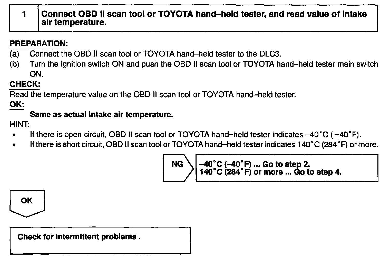 HINT: After confirming DTC P0110, use the OBD II scan tool or TOYOTA hand-held tester to confirm the intake air temperature form the CURRENT DATA.