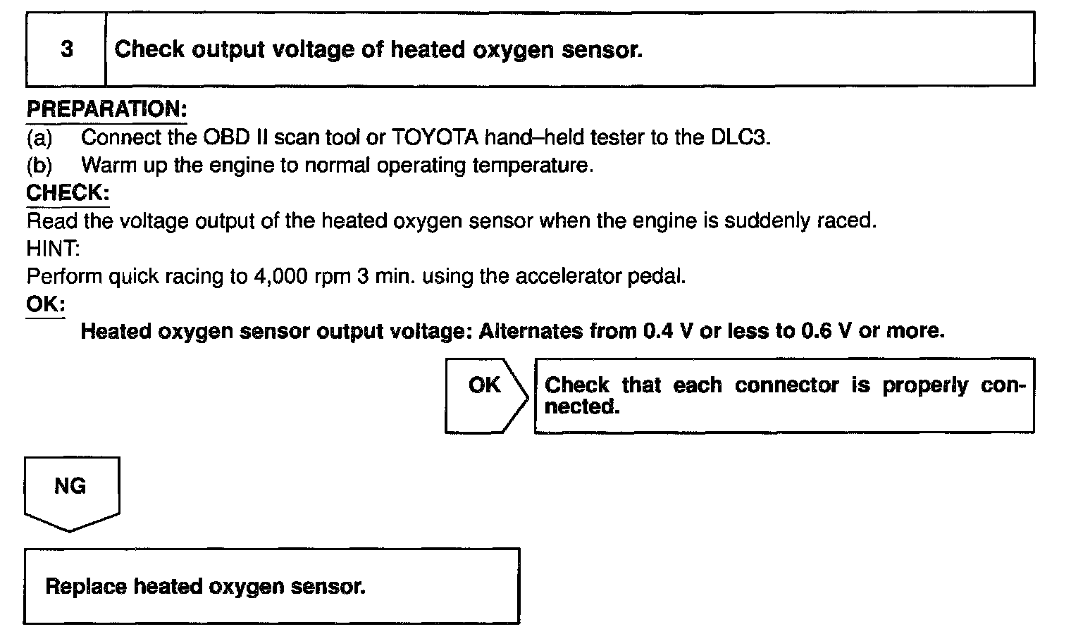 HINT: Read freeze frame data using TOYOTA hand-held tester or OBD II scan tool. Because freeze frame records the engine conditions when the malfunction is detected. When troubleshooting, it is useful for determining whether the vehicle was running or stopped, the engine was warmed up or not, the air-fuel ratio was lean or rich, etc. at the time of the malfunction.