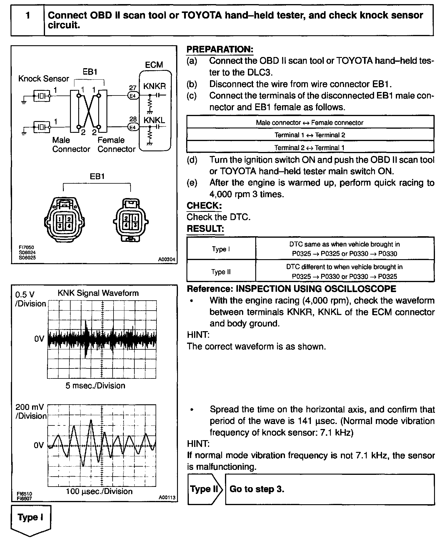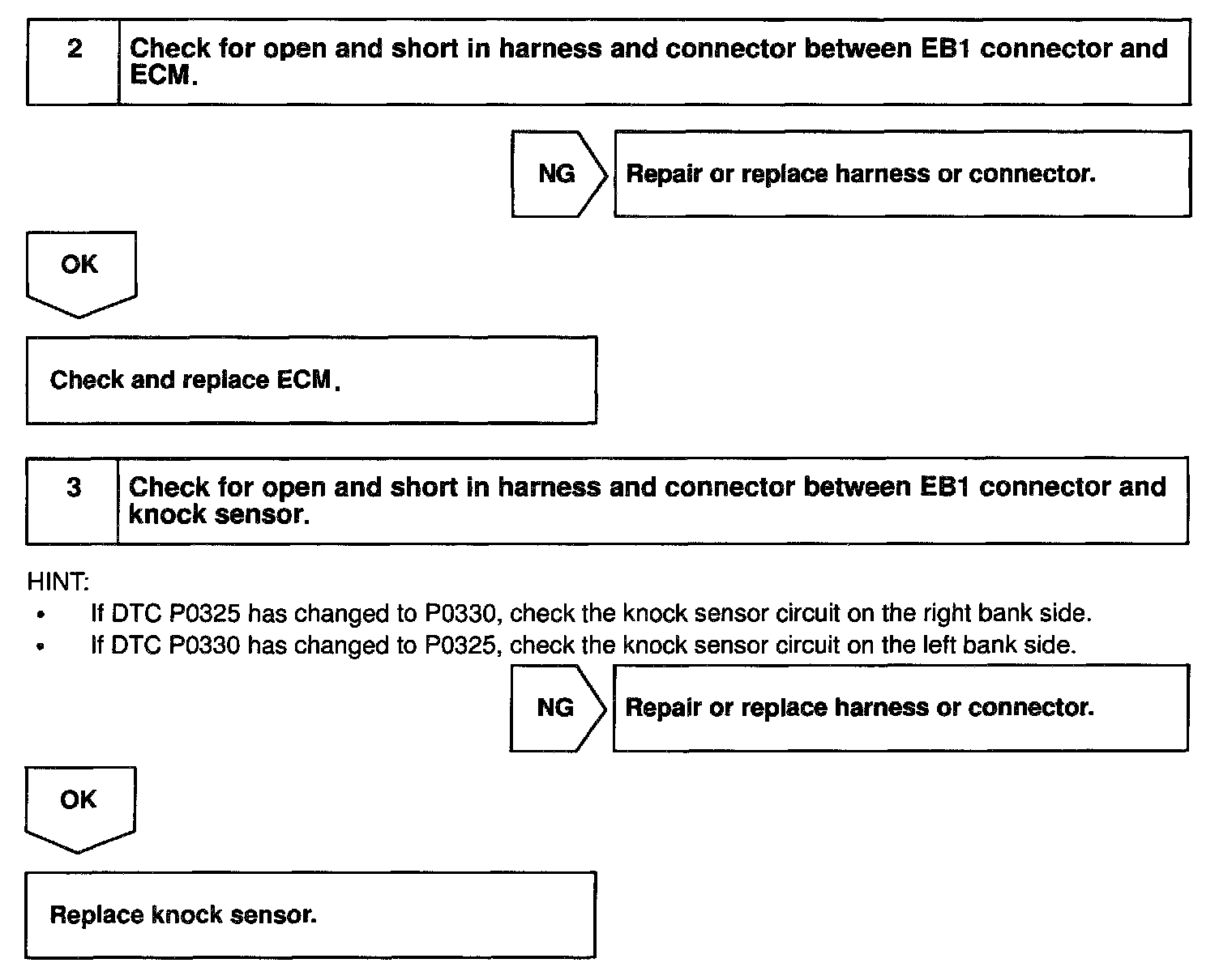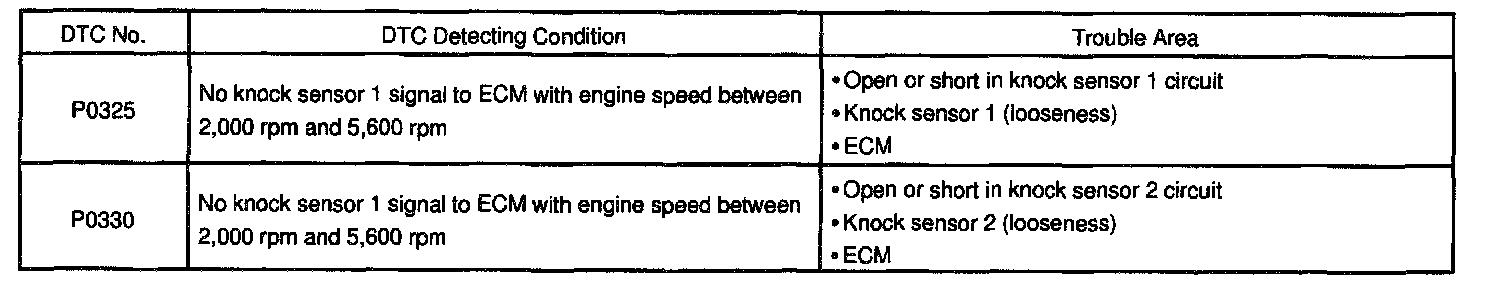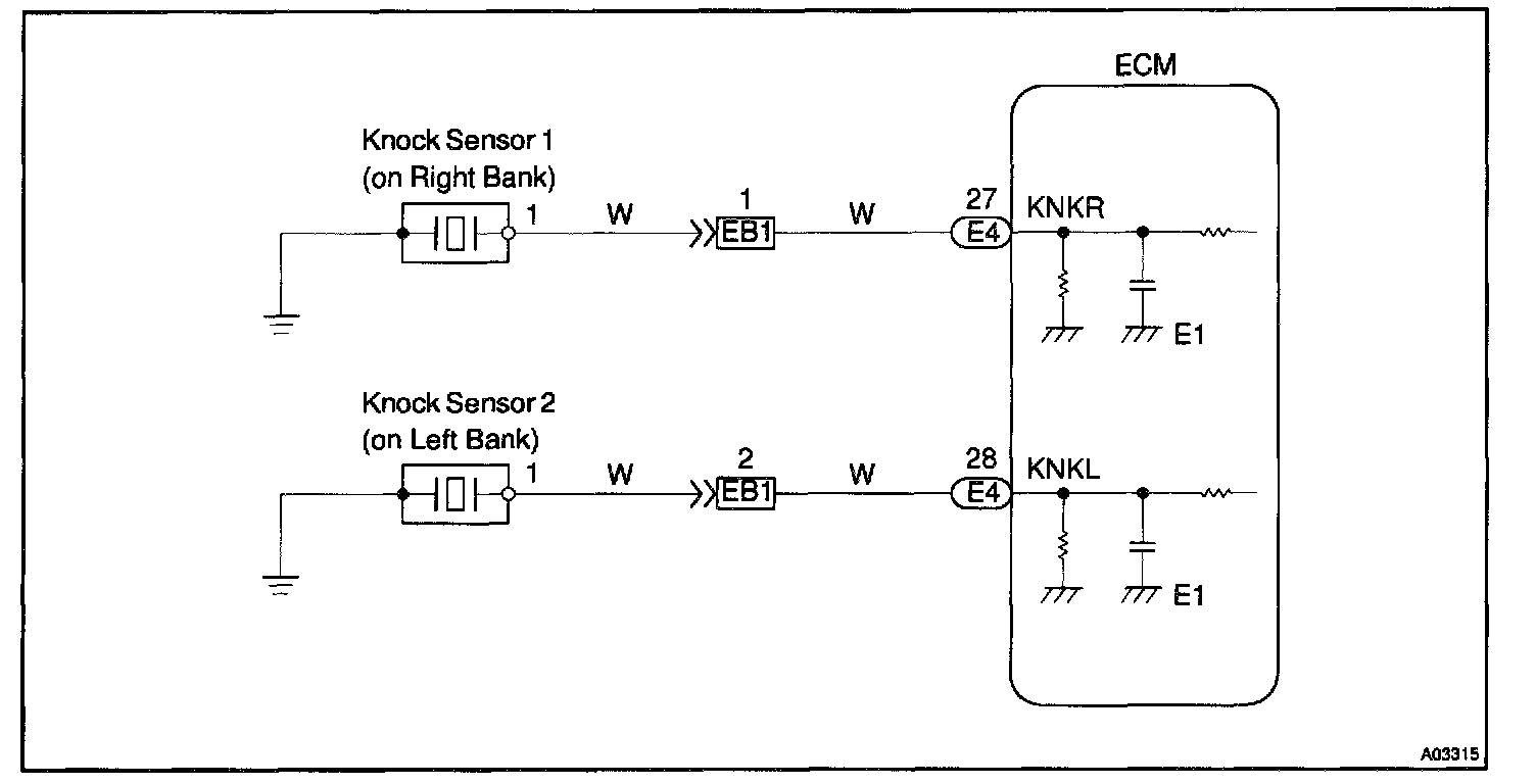Each of knock sensor is fitted to the right bank and left bank of the cylinder block to detect engine knocking. This sensor contains a piezoelectric element which generates a voltage when it becomes deformed, which occurs when the cylinder block vibrates due to knocking. If engine knocking occurs, ignition timing is retarded to suppress it.