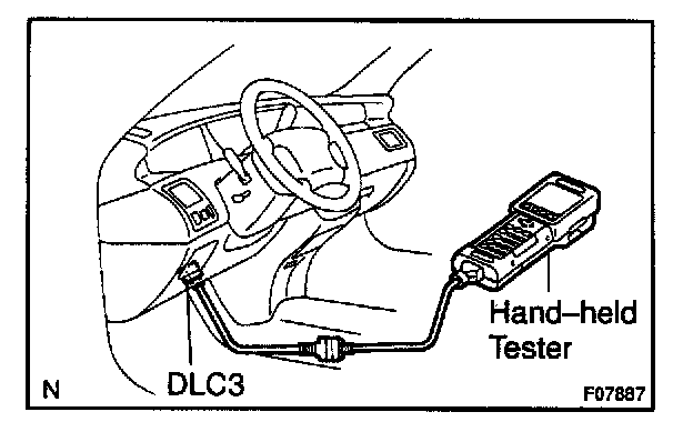 HINT: If your display shows "UNABLE TO CONNECT TO VEHICLE" when you have connected the cable of the hand-held tester to DLC3, turned the ignition switch ON and operated the hand- held tester, there is a problem on the vehicle side or tool side.