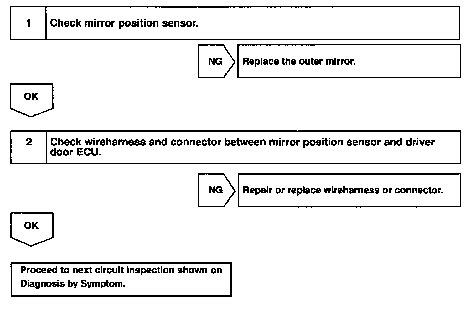 CIRCUIT DESCRIPTIONThis position detected by the mirror position sensor will be memorized in the seat ECU. This sensor is equipped in the mirror in spite of the existence of the memory function.