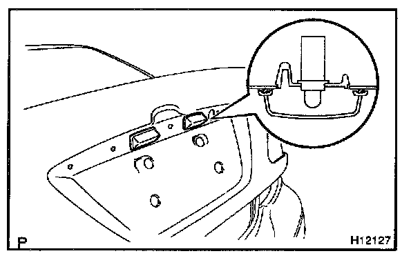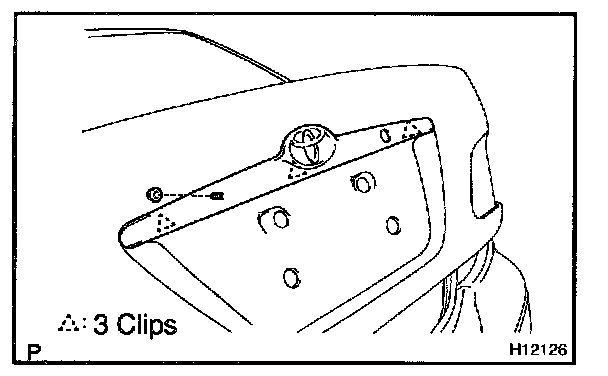 b. Remove the luggage compartment door outside garnish by compressing clips from the inside to disengage them.