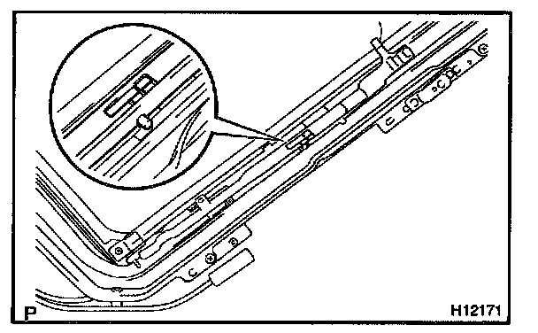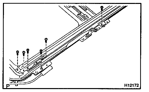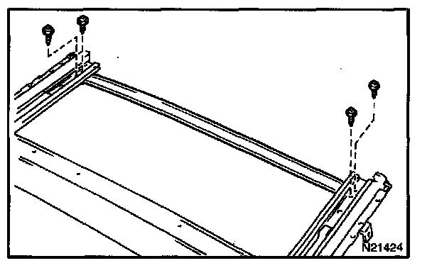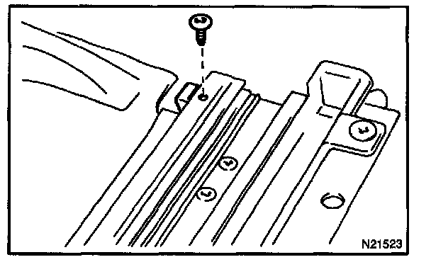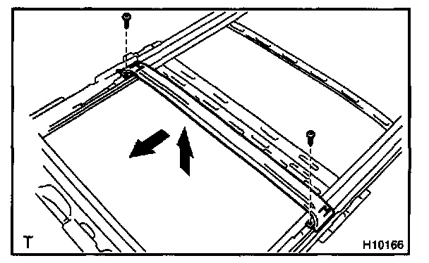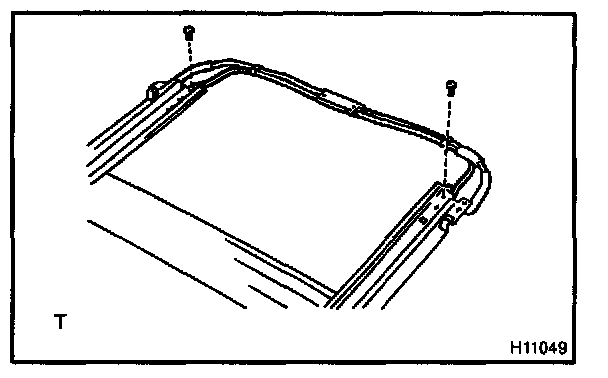 Remove the 2 screws and rear roof drip channel as shown in the illustration.