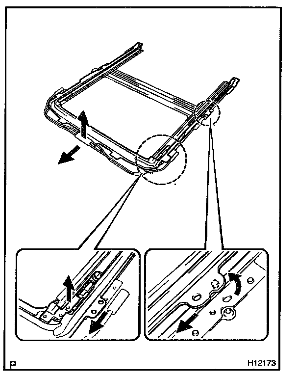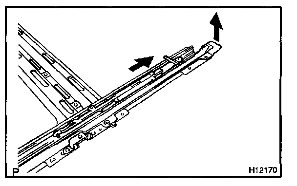 d. Disconnect the sliding roof housing from the drive rail, and slide the sliding roof housing forward.