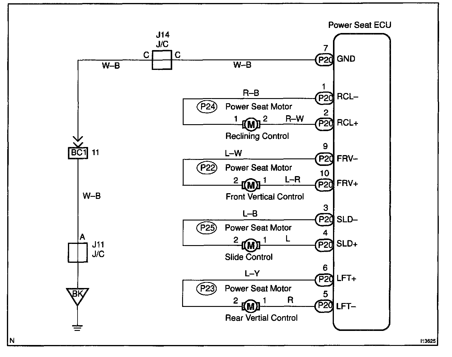 The Seat Position Control ECU controls the 4 motors for slide, front vertical, rear vertical and reclining.
